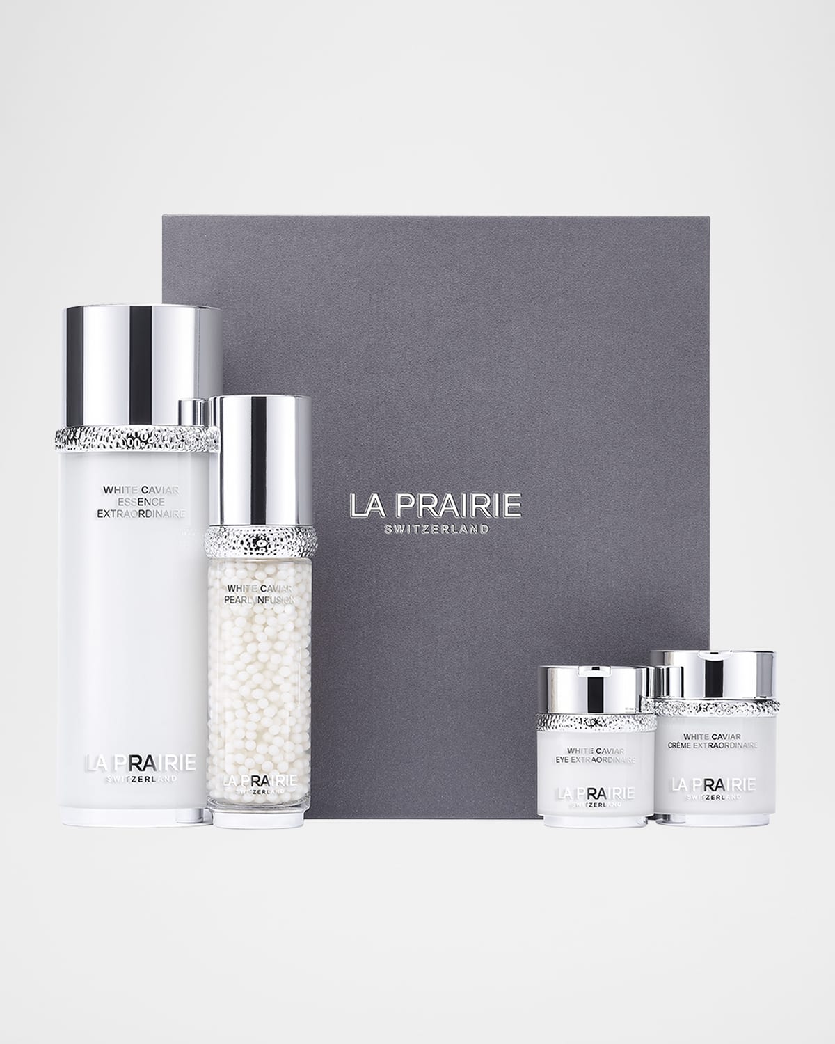 White Caviar Essence Extraordinaire, 5 oz./ 150 mL White Caviar Pearl Infusion, 1 oz./ 30 mL White Caviar Eye Extraordinaire, 3 mL White Caviar Crème Extraordinaire, 5 mL