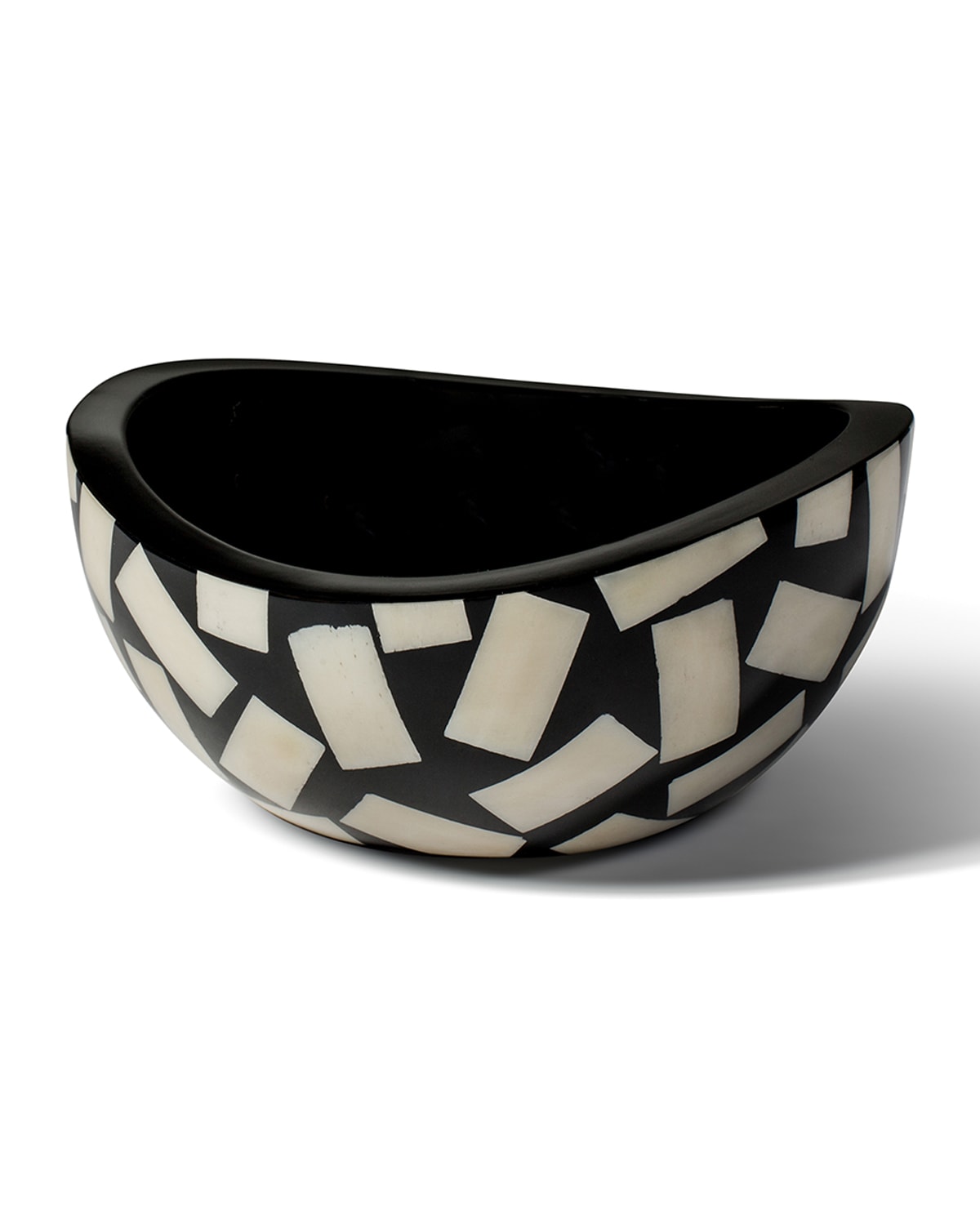 Handcrafted accent bowl made of wood and cow bone from Colombia. Bone tiles are intricately inlaid on a contrast backdrop. Highgloss lacquer finish. 6.7"W x 6.7"D x 3.1"T. Imported. Boxed weight approx. 5 lbs.