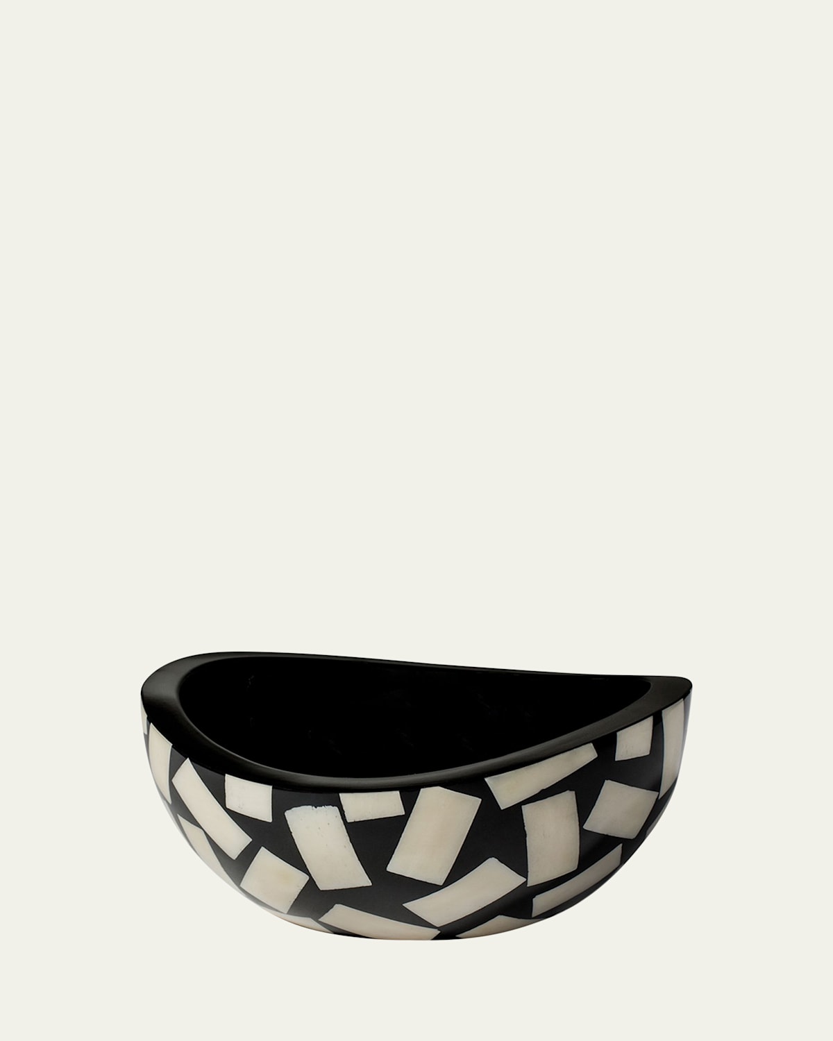 Handcrafted accent bowl made of wood and cow bone from Colombia. Bone tiles are intricately inlaid on a contrast backdrop. Highgloss lacquer finish. 6.7"W x 6.7"D x 3.1"T. Imported. Boxed weight approx. 5 lbs.
