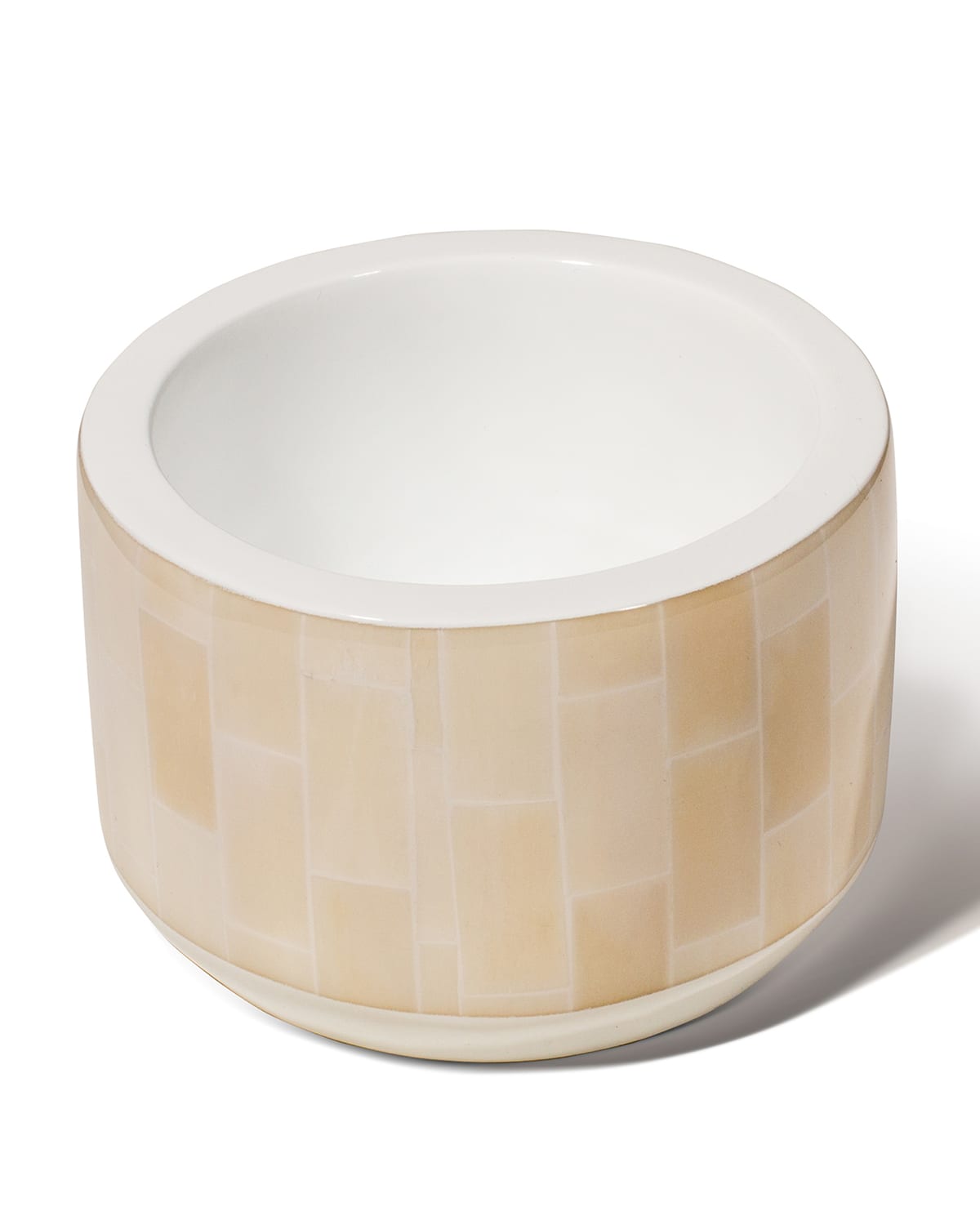 Handcrafted bottle holder. Made of wood and inlaid Colombian cow bone tiles. 5.1"W x 5.1"D x 3.1"T. Imported.