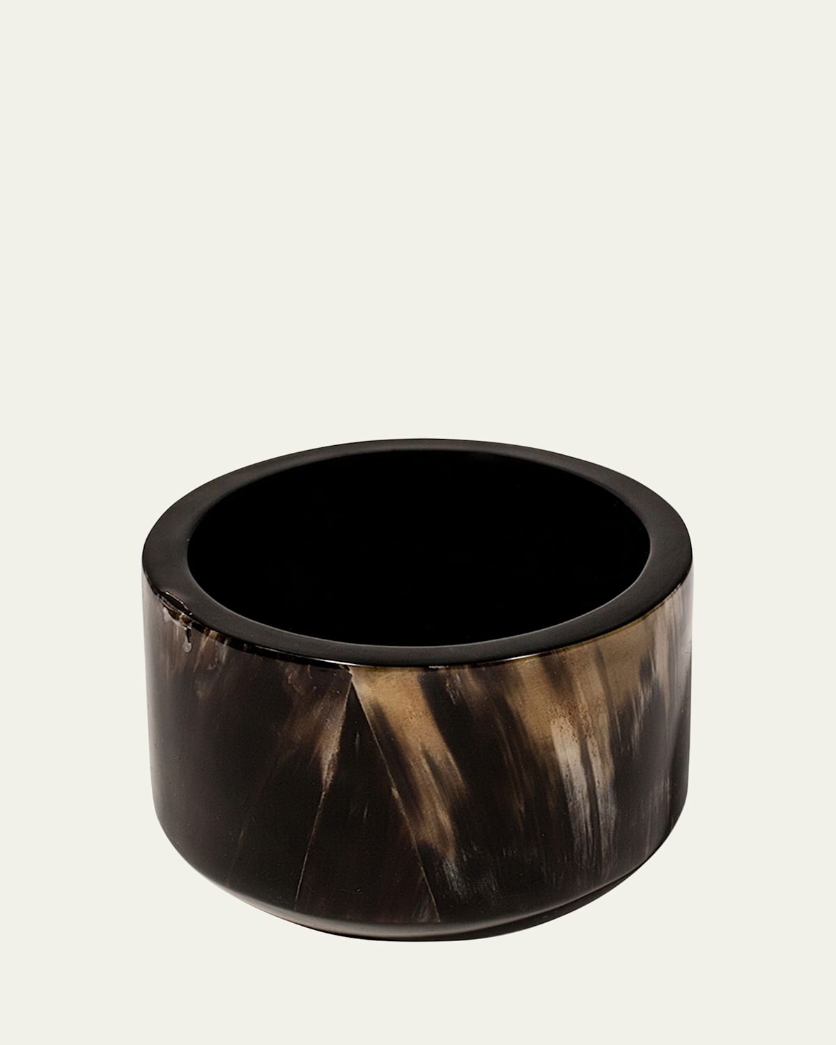 Handcrafted bottle holder. Made of wood and ethically sourced bull horn veneer. 5.1"W x 5.1"D x 3.1"T. Imported.