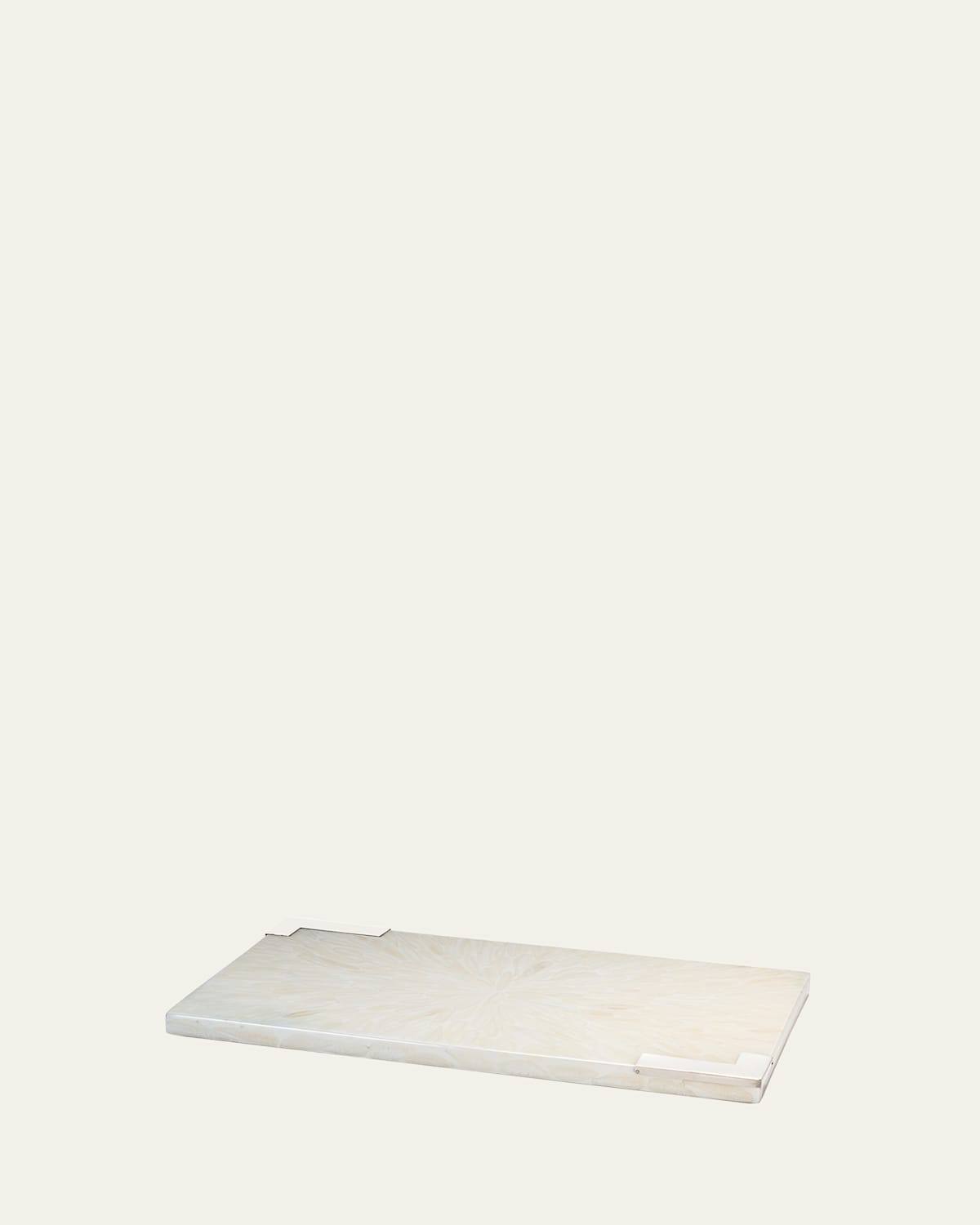 Handcrafted serving board made of wood and cow bone from Colombia. Almondshaped bone is intricately inlayed to create a unique aesthetic, which is completed with a highgloss lacquer finish. Polished German silver decorative accents. 15.7"W x 7.9"D x 0.8"T. Imported.