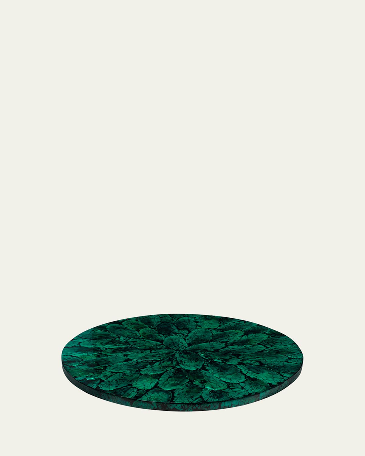 Handcrafted Lazy Susan made of wood and mother of pearl shells from Colombia. The malachite green color is the result of a proprietary dye process, and is accentuated by a highgloss lacquer finish. 15.7"Dia. x 1.5"T. Imported.