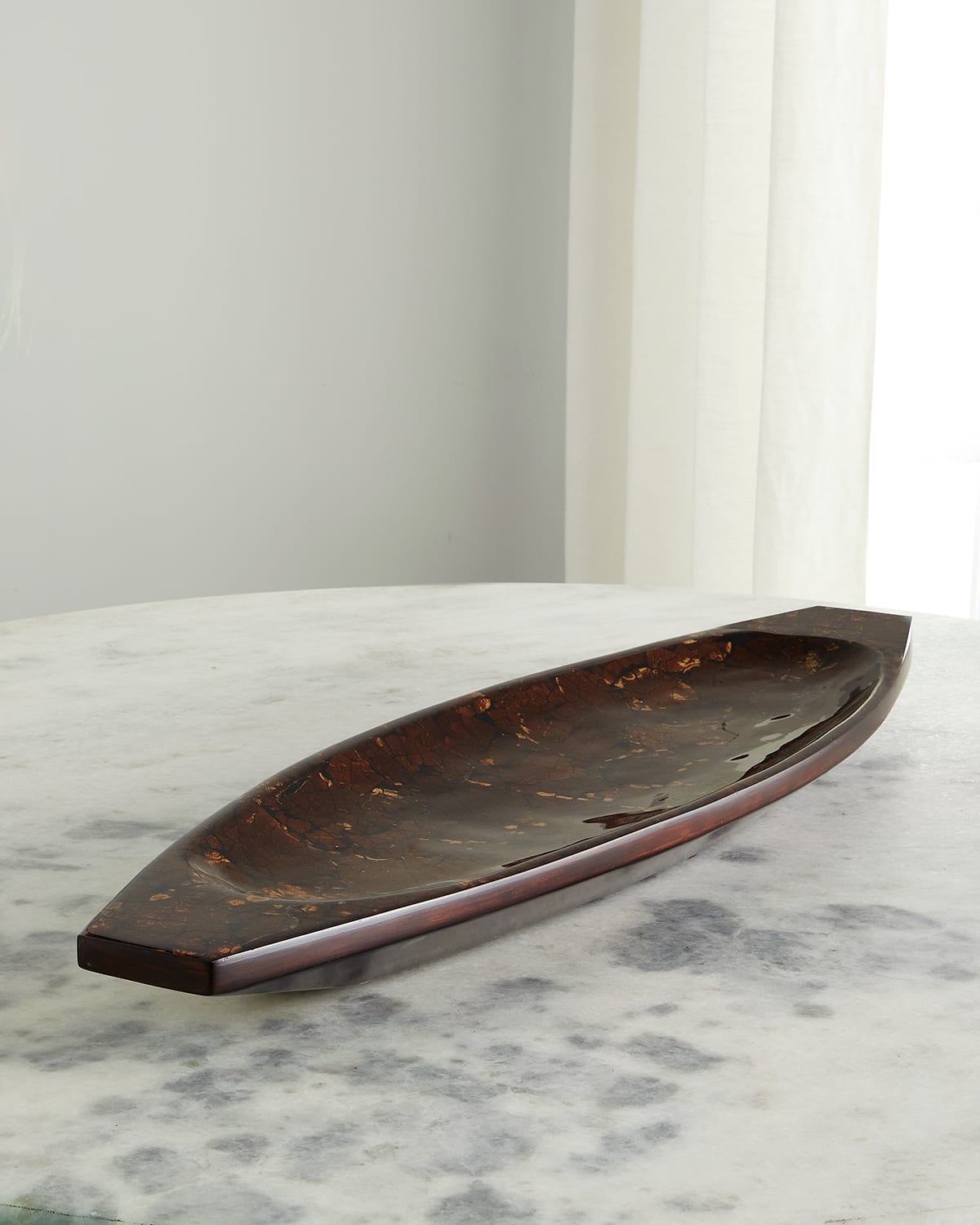 Handcrafted of coconut shells and wood The rich dark coconut is further accentuated by a highgloss lacquer finish. Approx. 7.9"W x 25.6"D x 2"T Wipe clean Made in Colombia