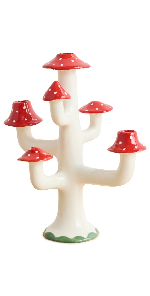Ceramic earthenware with gloss finish. Mushroom silhouette. Holds up to 3 candlesticks. Made in Portugal. This item cannot be gift-boxed. Measurements: Height: 11.75in / 30cm Diameter: 9.75in / 24.5cm