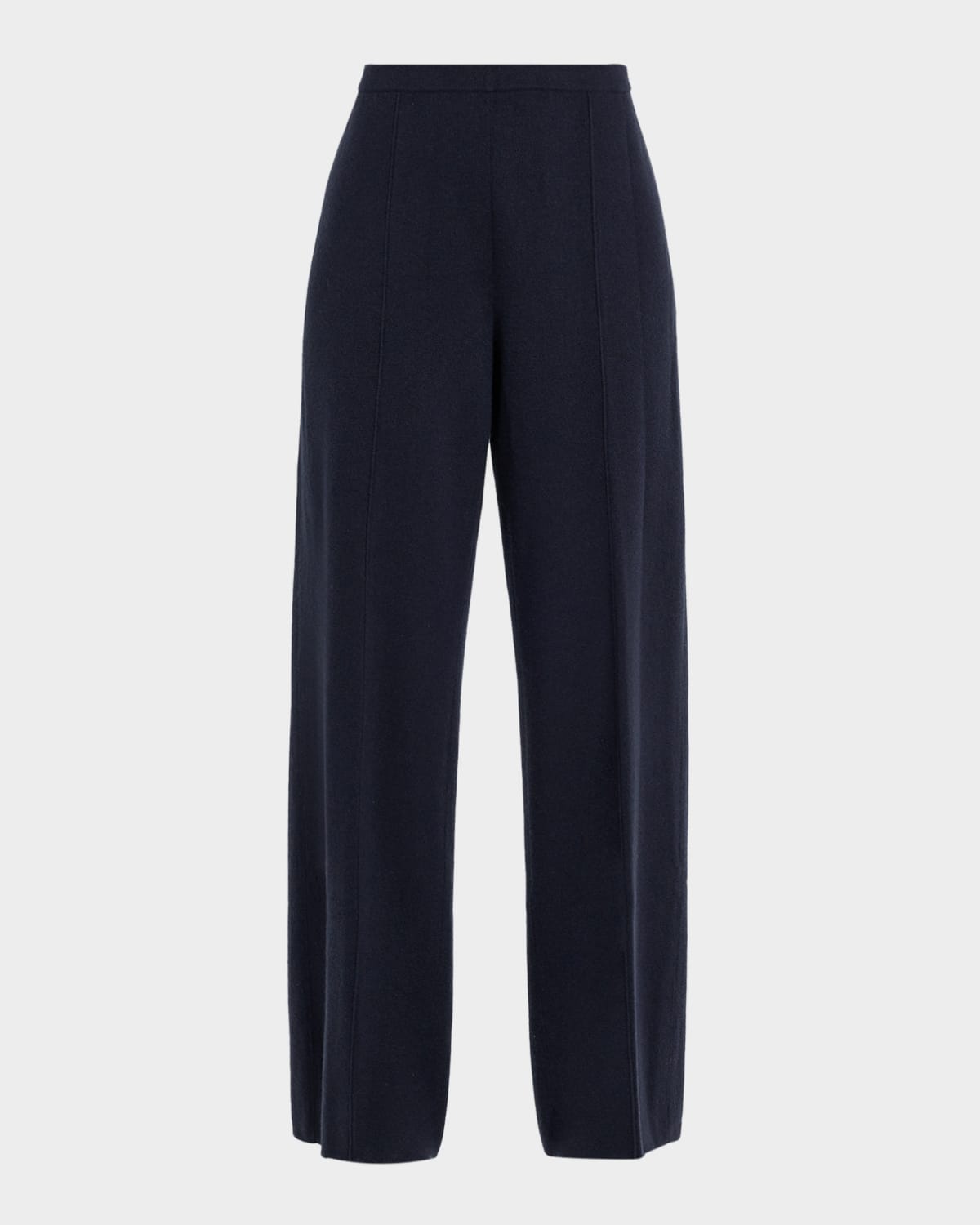 Lafayette 148 New York pants feature doubleknit construction of cashmere face with silk inside. Approx. measurements: 30.5" inseam; 11.5" rise; 24" leg opening (size M). Front center seams down legs. Wide legs. Full length. Pullon style. Cashmere/silk/nylon/spandex. Dry clean. Imported.