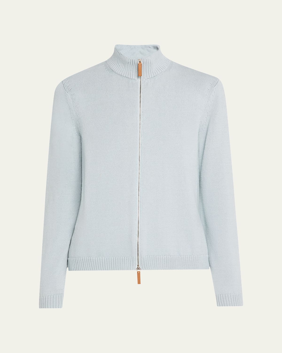 Lafayette 148 New York sweater jacket Approx. 23"L from shoulders to hem Ribbed neck, cuffs, and hem Stand collar; twoway zip front Long sleeves Fitted silhouette Cotton/silk Zipper face: polyester/spandex Dry clean Imported