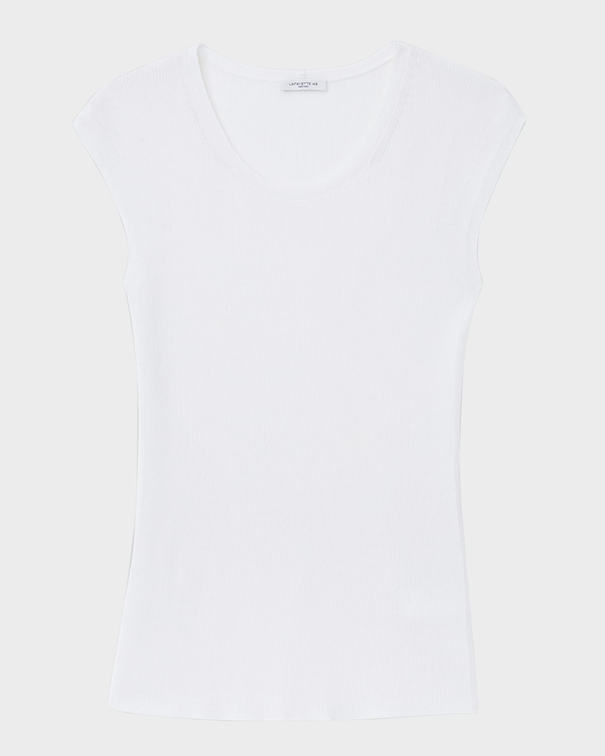 Lafayette 148 New York ribbed pullover Approx. 25"L from shoulders to hem Scoop neckline Cap sleeves Relaxed fit Pullover style Lyocell/silk Unlined Hand wash Imported