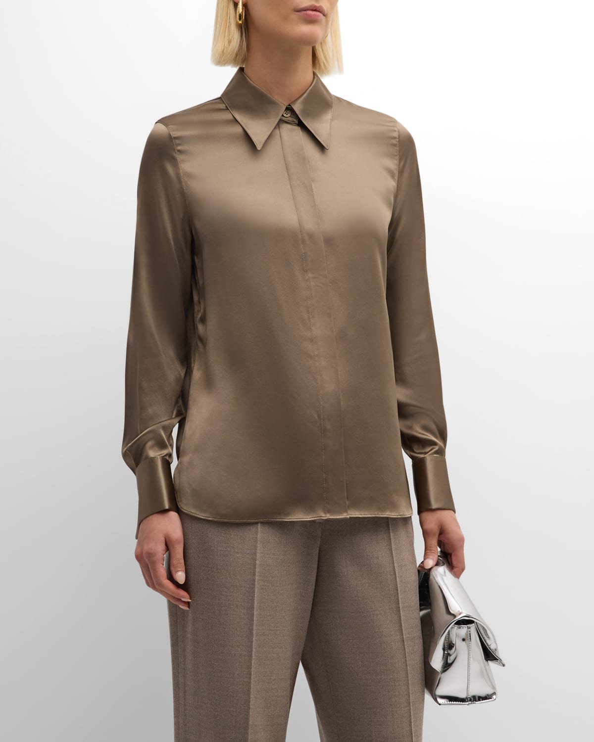 Spread-Collar Silk Charmeuse Blouse