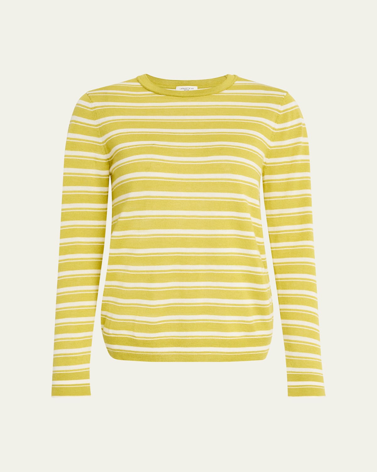 Lafayette 148 New York striped sweater Crew neckline Long sleeves Relaxed fit Pullover style Silk/linen Lining: Cotton/silk Hand wash Imported