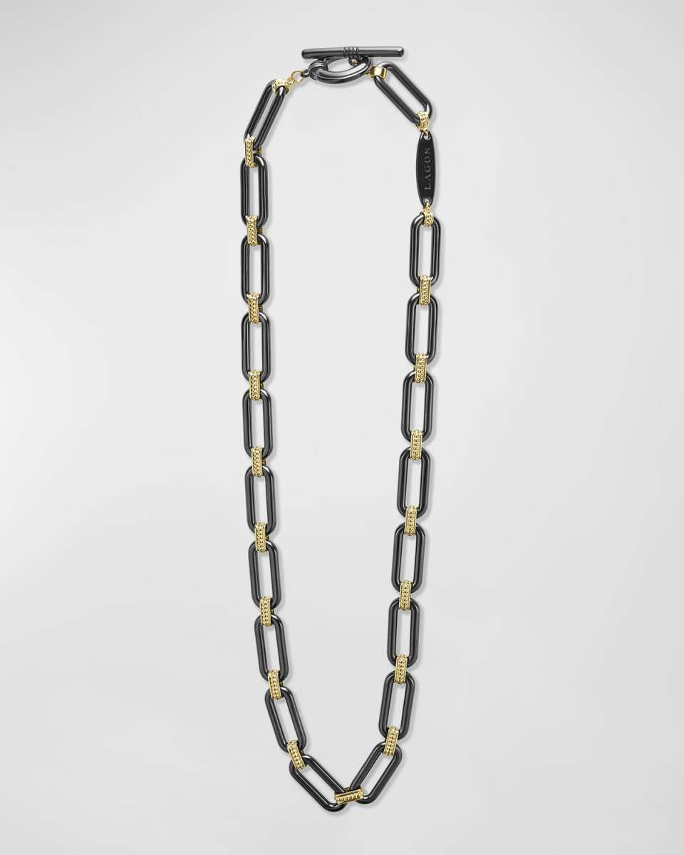 LAGOS chain necklace from the Signature Caviar Collection 18karat solid yellow gold Caviar beading and fluting Black ceramic links Approx. 18"L Adjustable length Toggle clasp Imported