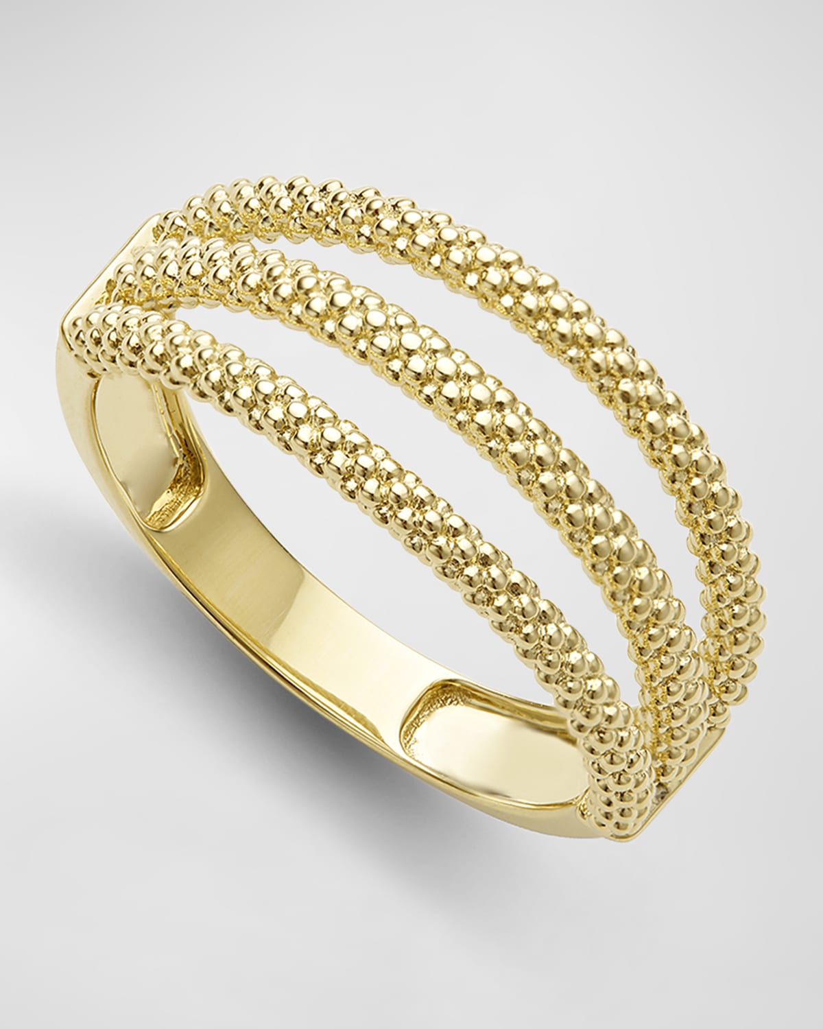 18K Gold Superfine Caviar Beaded 3-Row Ring, Size 7