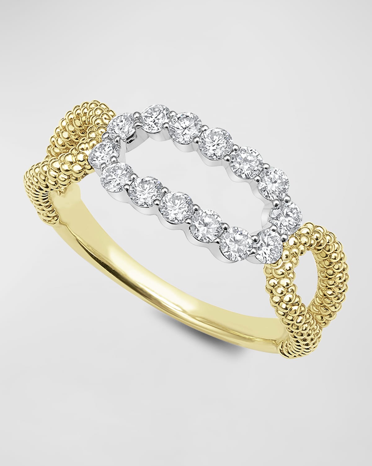 LAGOS openlink ring Approx. ring size 7 18karat yellow gold superfine Caviar beading 14 white diamonds set in 18karat white gold LAGOS diamonds are the highest quality natural stones Diamond total carat weight: 0.49 Imported