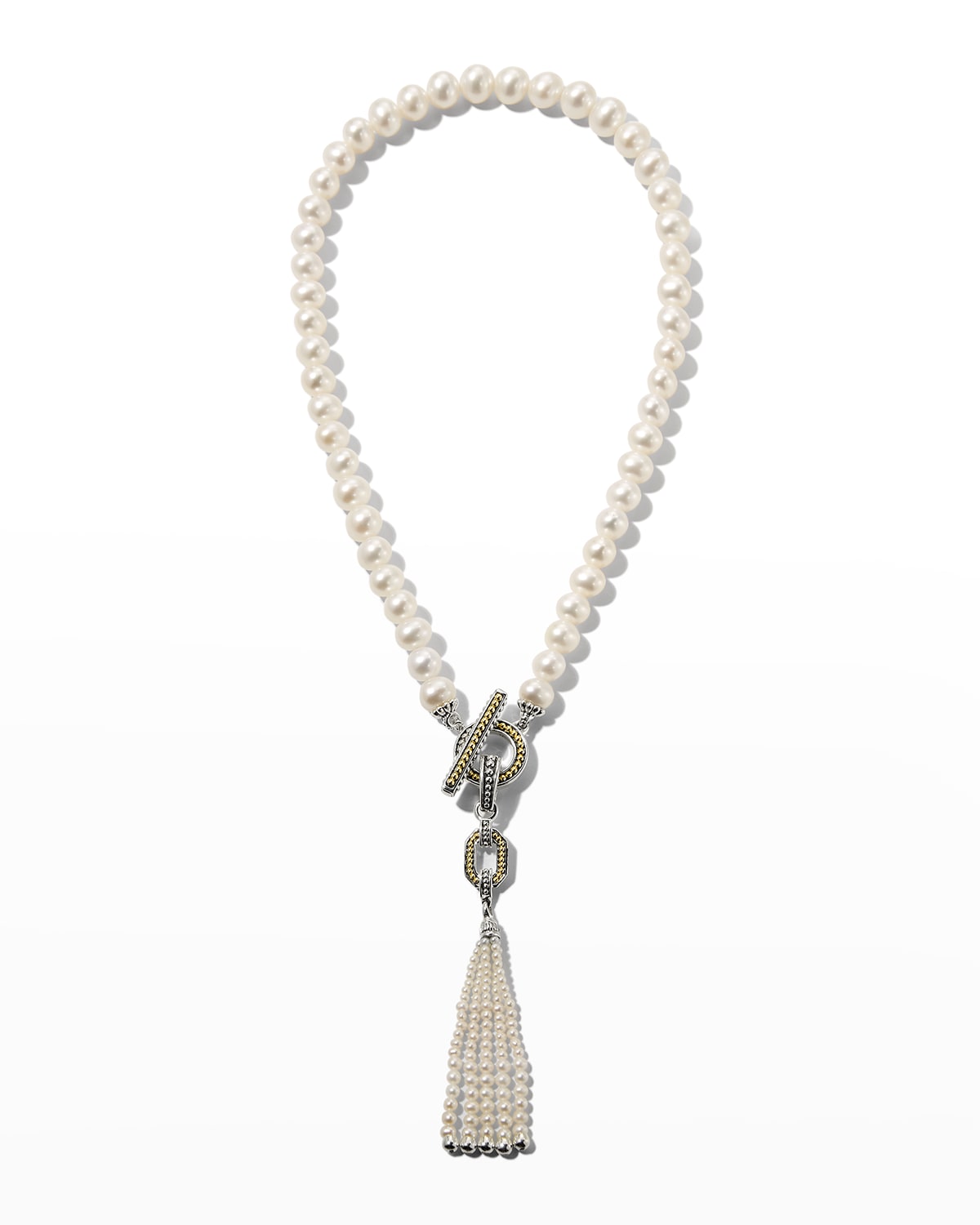 Luna pearl tassel necklace by LAGOS. Sterling silver and 18karat yellow gold. Pearl strand with detachable pearl tassel. Naturally hued freshwater cultured pearls. Approx. 18"L; 3.8"L tassel. Toggle clasp. Imported.