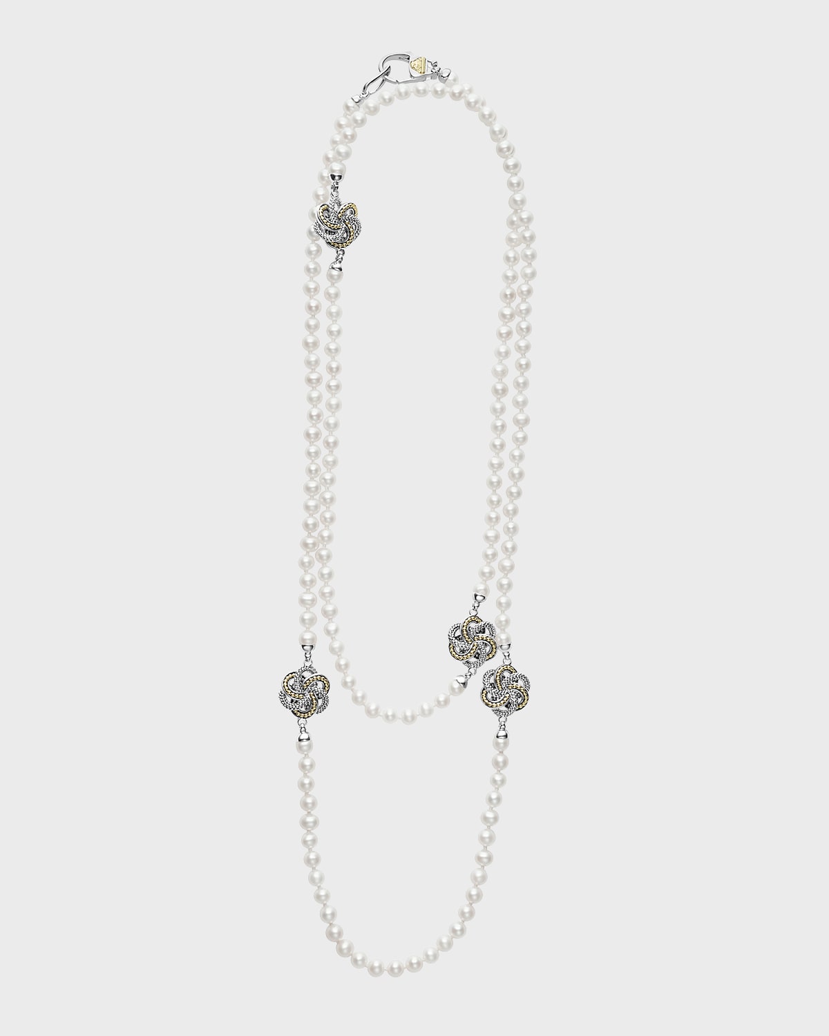 Luna pearl necklace by LAGOS. Sterling silver and 18karat gold. Naturally hued freshwater cultured pearls. Approx. 34"L; 0.5"W stations. Lobster clasp. Imported.