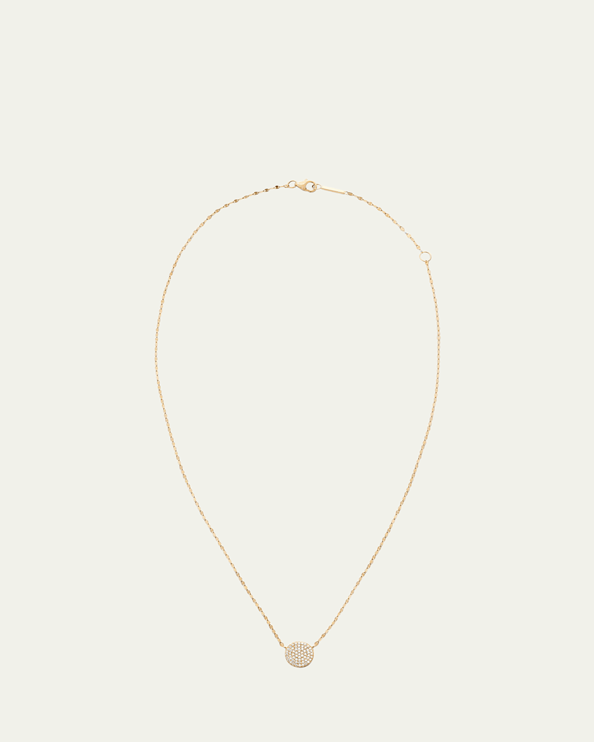Diamond pavé circle necklace by LANA. Signature 14karat gold flat link chain. Discshaped drop with diamond pavé. 0.22 total diamond carat weight. Adjustable; lobster clasp. Approx. 1618"L; 0.4"W.