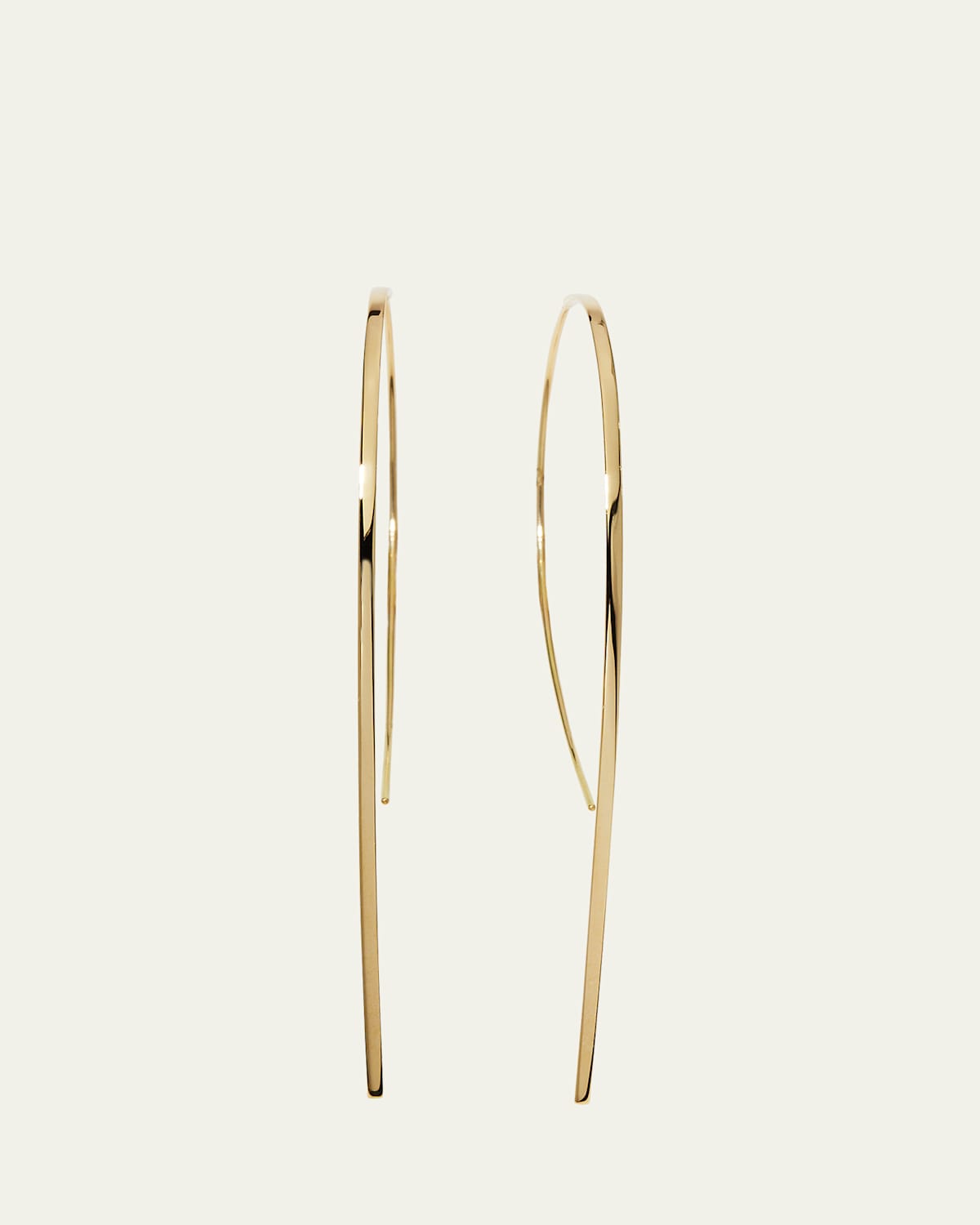 14karat gold. Hook silhouette loops through ear. Flat drop tapers to slim hookthrough. Approximately 2 1/4"L. Made in USA of Italian materials.