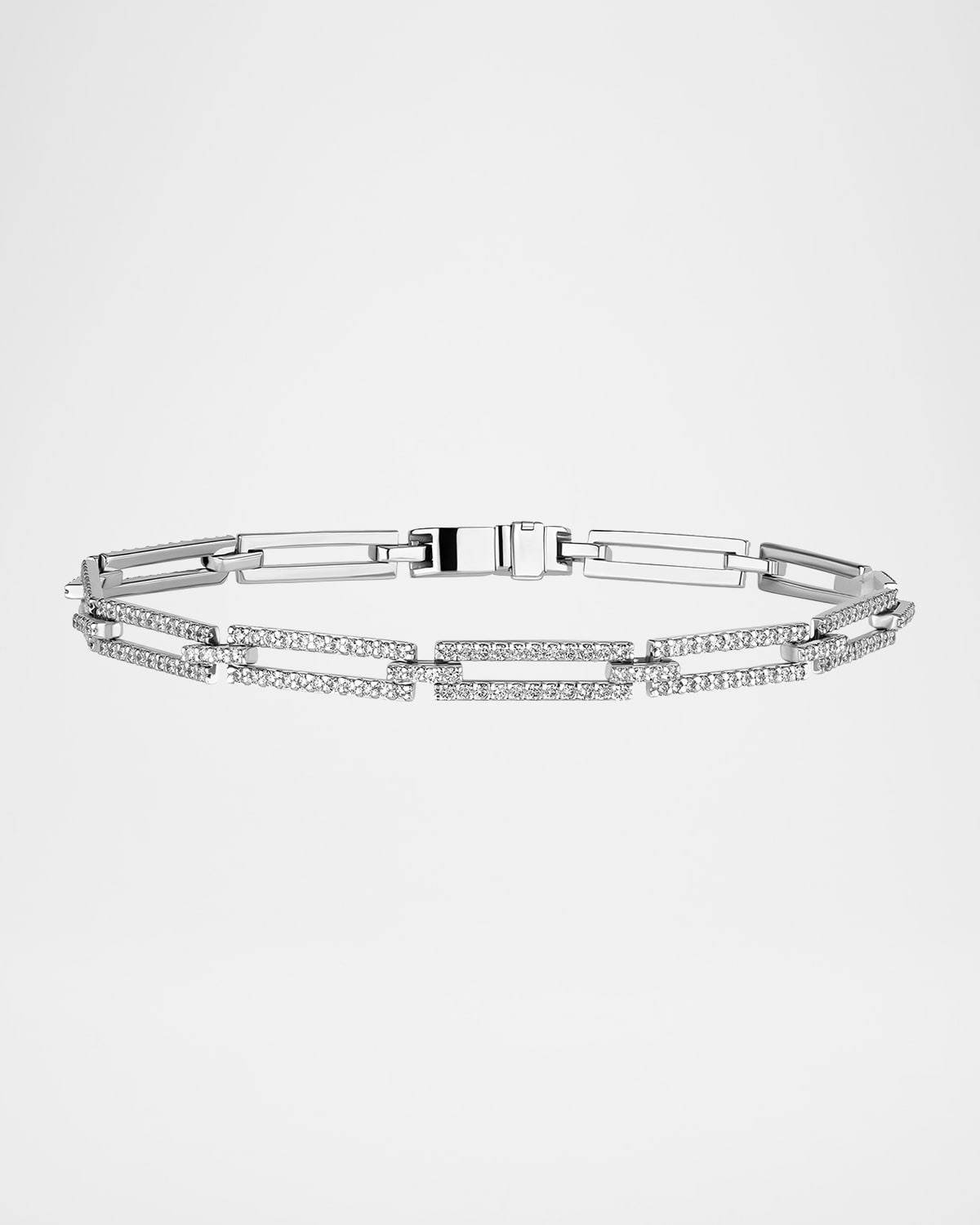 The narrow links and connectors of this LANA bracelet form a thin silhouette, while pavé diamonds add depth and dimension to this flexible piece. Approx. 6" length Polished 14karat solid gold Diamond total carat weight: 1.42 Box clasp Imported