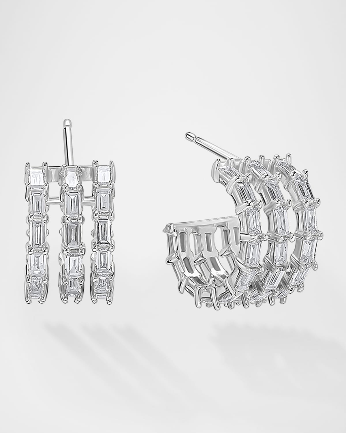Three rows of beautiful baguette diamonds create a caged silhouette for these LANA small hoop earrings. Approx. 14mm drop Polished 14karat solid gold Diamond total carat weight: 1.65 For pierced ears Butterfly backs Imported