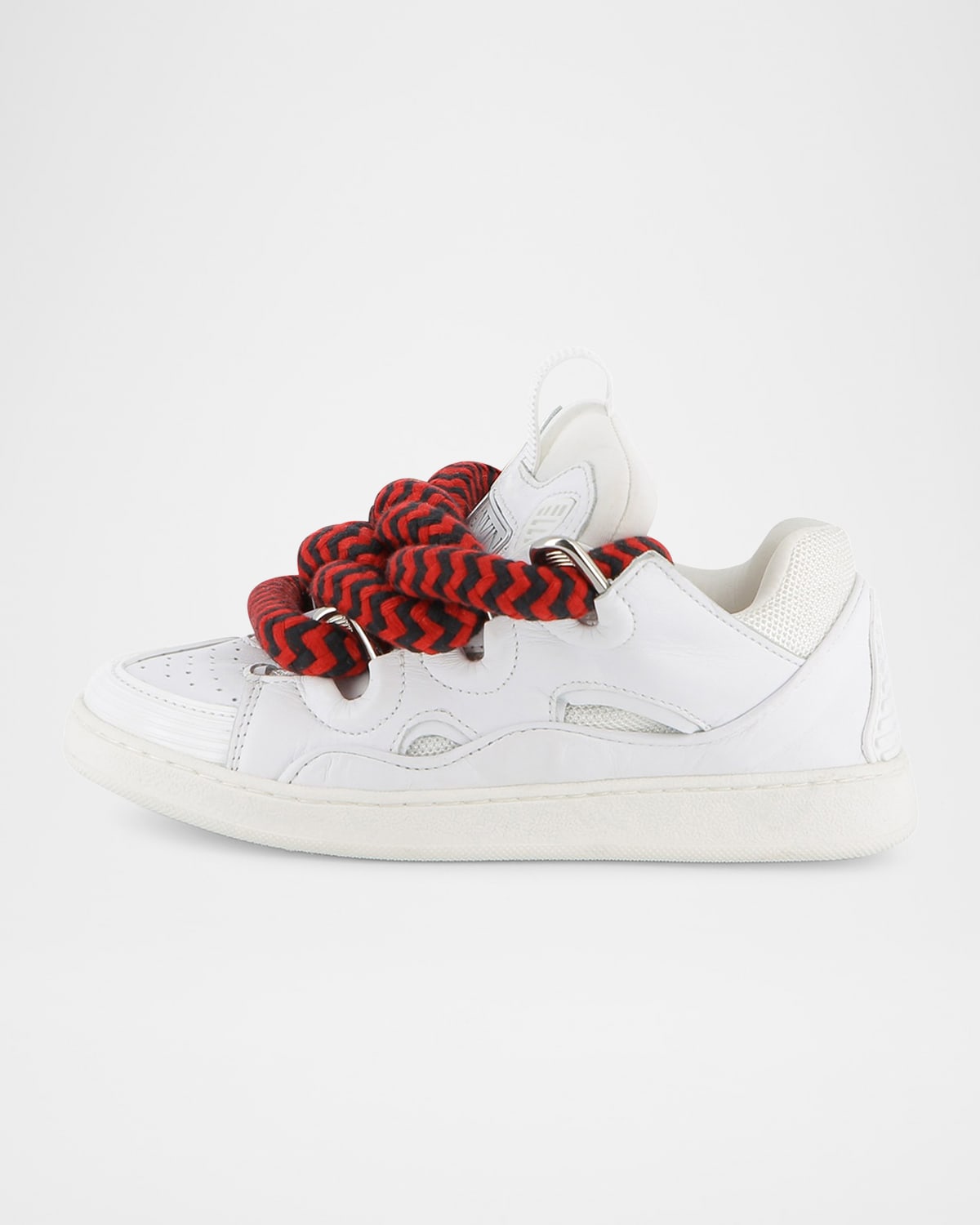 Lanvin "Curb" sneakers with a sheep leather and textile upper Flat heel Perforated round toe Laceup vamp Padded tongue with pullloop Sold with a set of two laces Lining: Leather Machine wash cold Made in Portugal