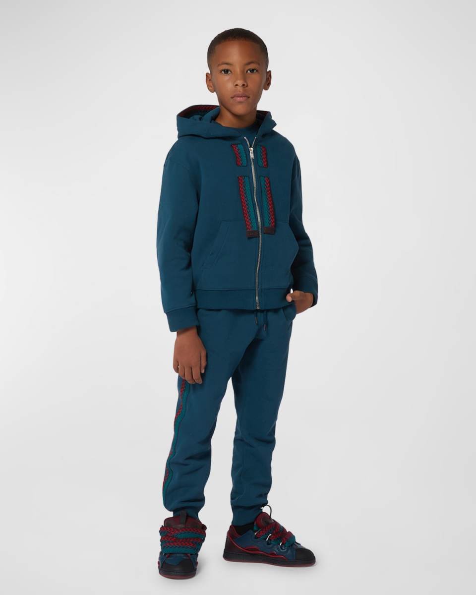 Lanvin "Curbisme" fleece hoodie with "Curb" pattern and classic logo embroidery at the back Hooded neckline Long sleeves Full zip front Split kangaroo pocket Banded cuffs and hem Ribbed trim Cotton Machine wash cold Imported