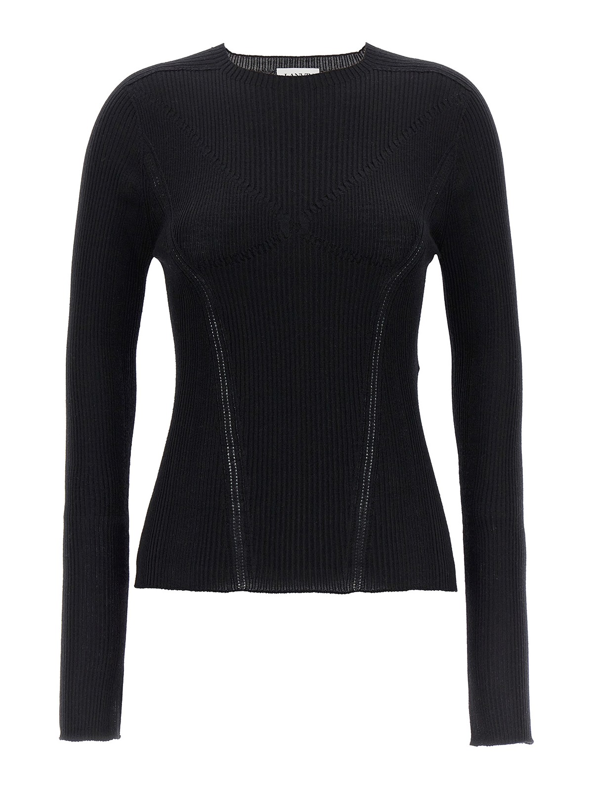 Pull côtelé à col rond en cachemire mélangé à manches longues