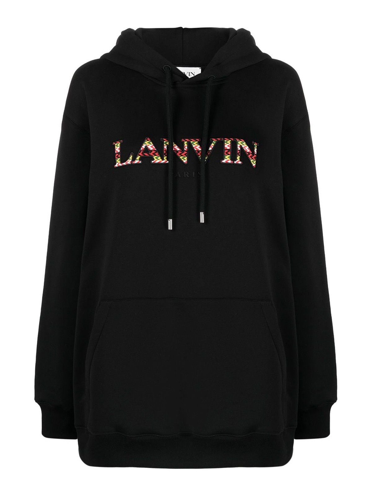 Sweat-shirt à capuche avec logo brodé par Lanvin avec logo brodé en coton noir/multicolore sur l'ourlet avant avec cordon de serrage, manches longues et poche kangourou sur le devant