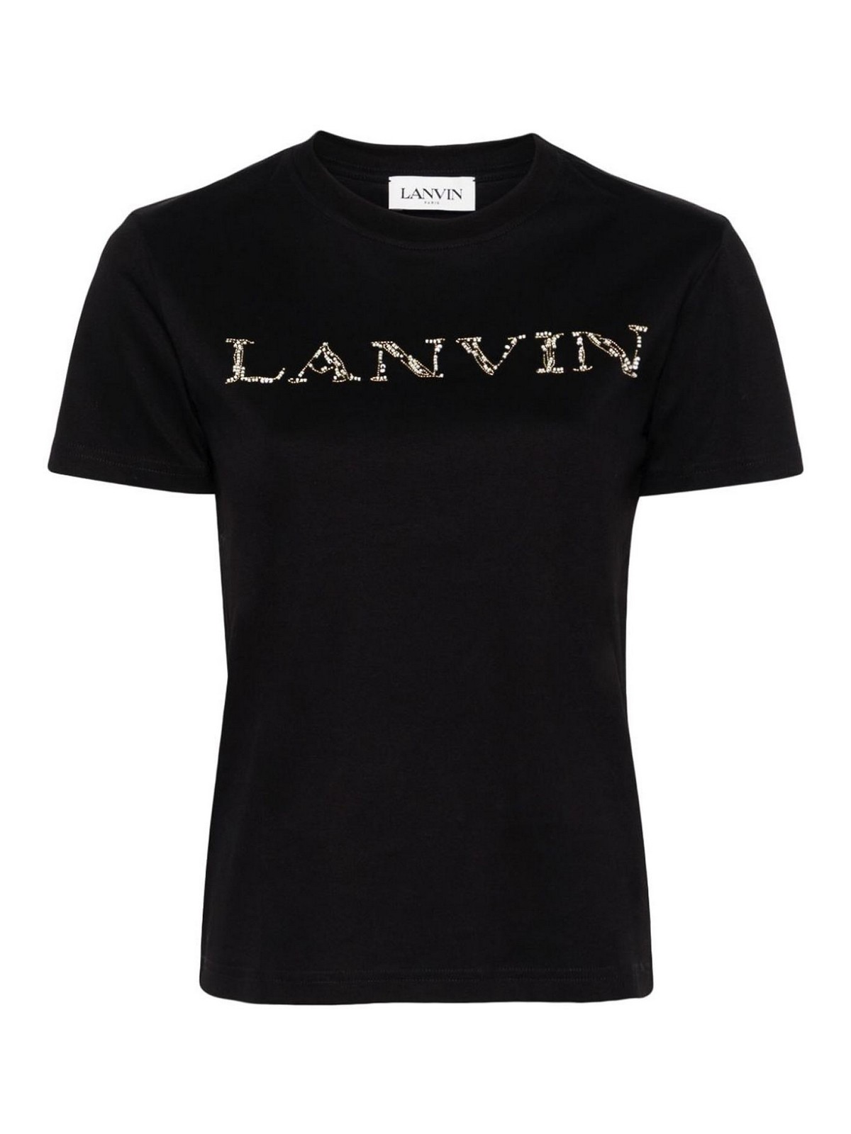 Logo légèrement brodé sur les perles, noir/blanc/, ton sur ton, col rond, manches courtes, ourlet droit