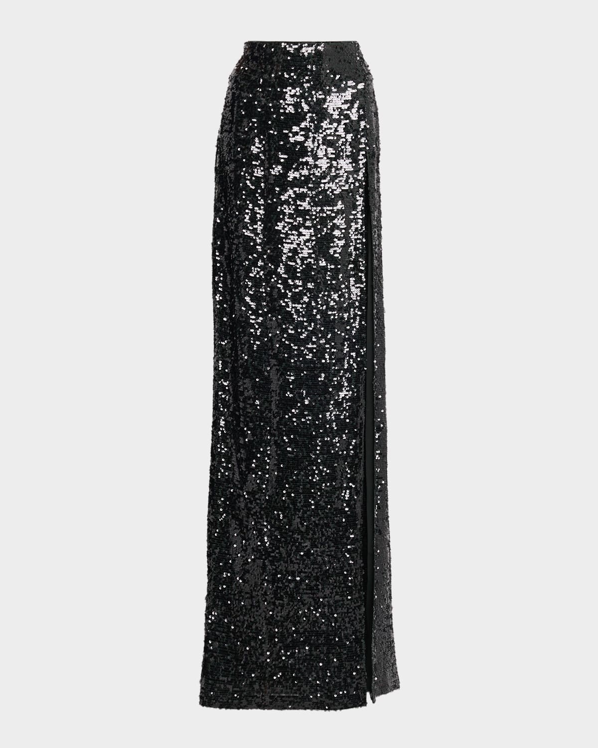 Sequined Thigh-Slit Maxi Skirt