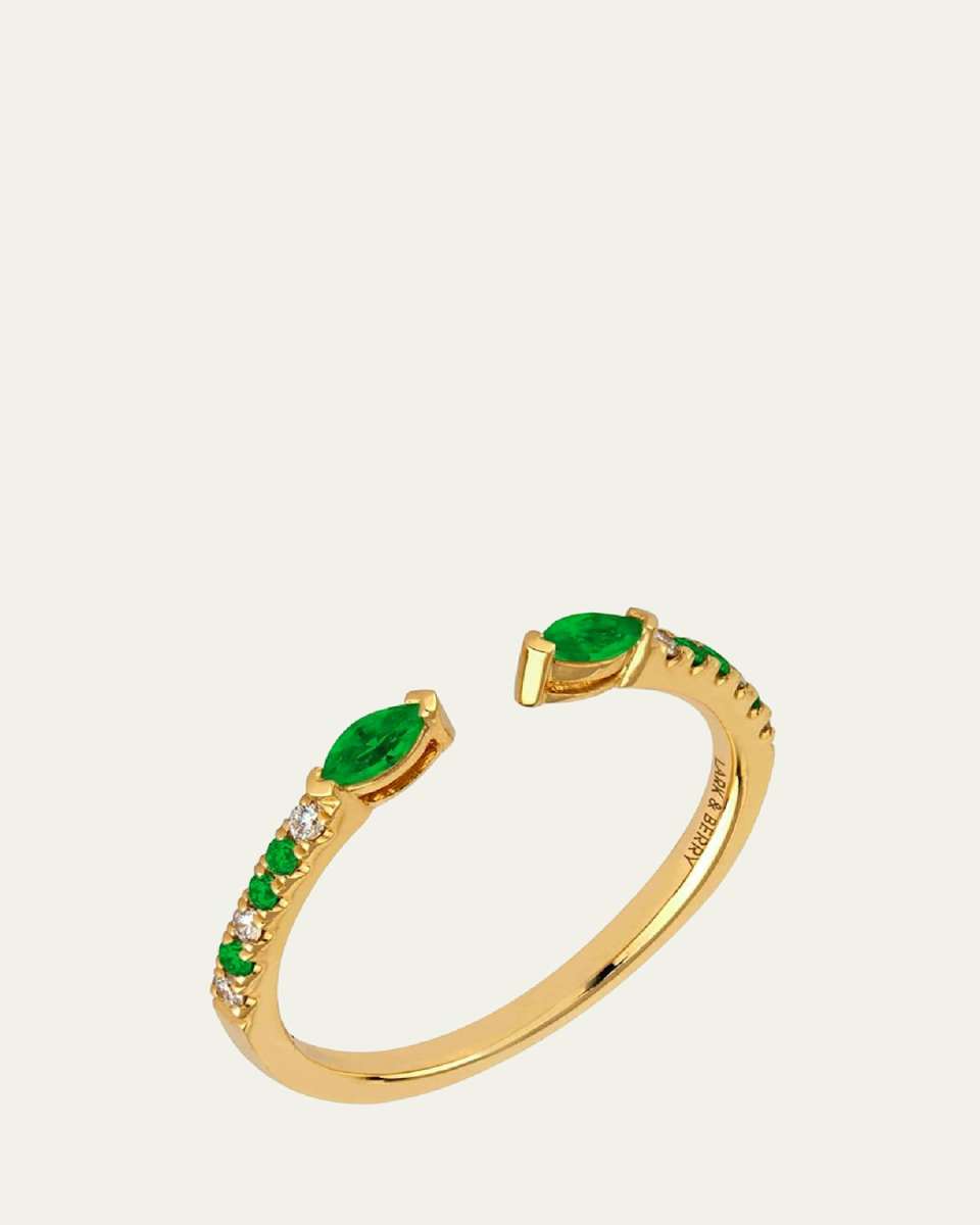 14K Yellow Gold Veto Open Ring with Lab Grown Diamonds and Cultured Emeralds