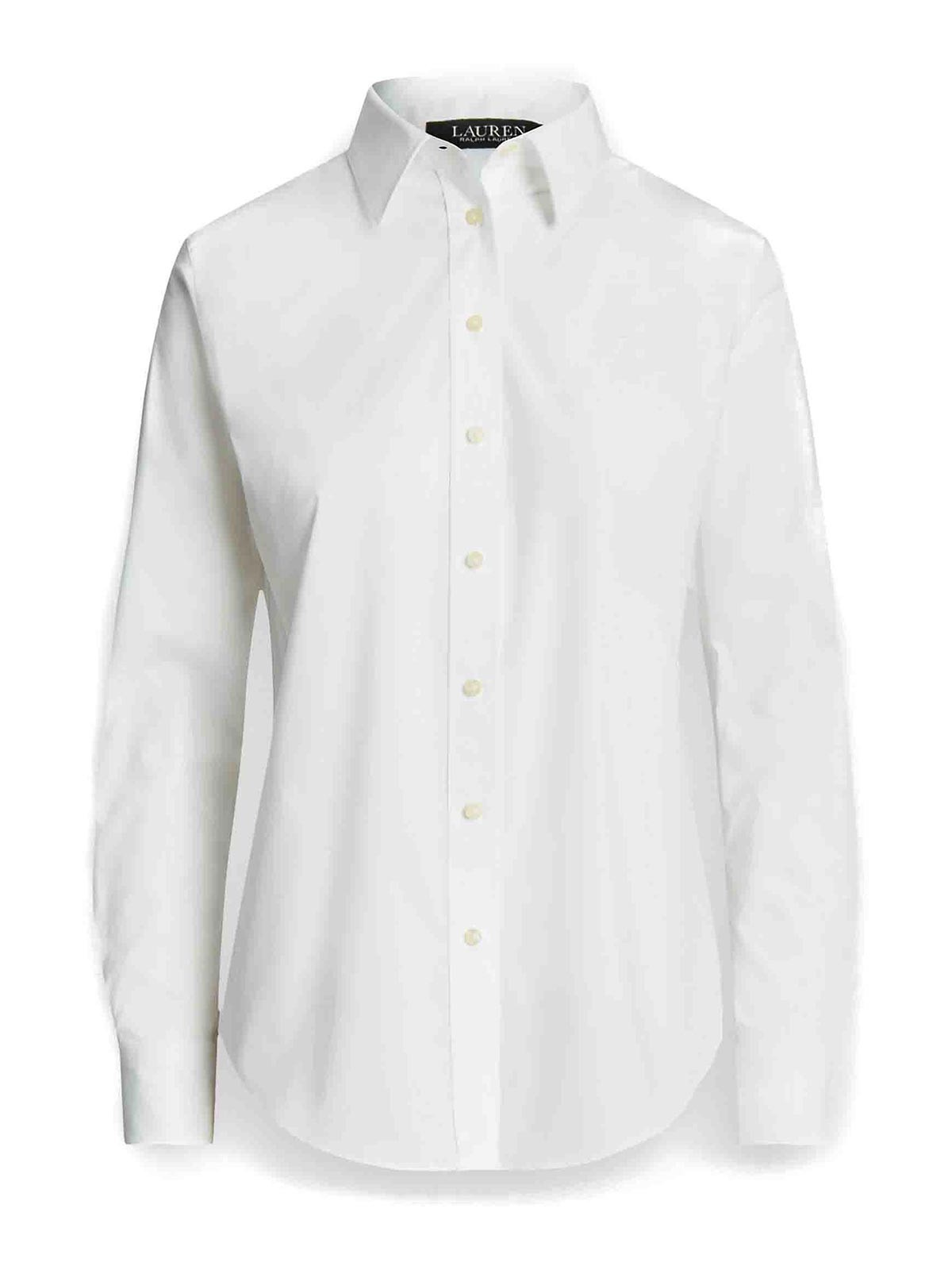 Chemise blanche Lauren Ralph Lauren à manches longues avec poignets boutonnés et col évasé