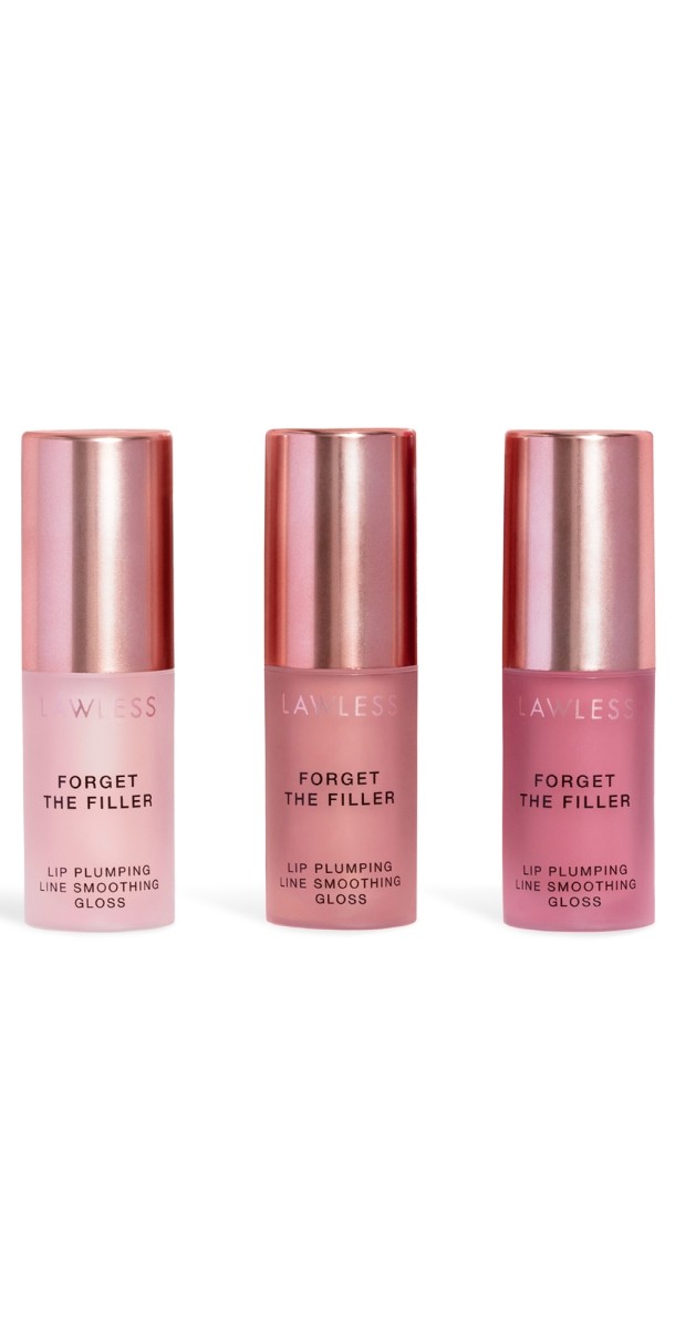 Cannot be shipped outside the USA What it is: Achieve maximal lip with every dip with this trio of mini lip glosses from LAWLESS, which combine a lip-plumping treatment and ultra-shiny gloss with sheer and vivid colors. What it does: Made with the label's signature MAXI LIP formula and packed with skin-soothing ingredients, these lip glosses will leave you with pillowy-soft lips that that look plump and hydrated. Good to know: Certified cruelty free by Leaping Bunny, vegan, fragrance free, free from silicones, parabens, phthalates, sulfates, mineral oil and PEGs. How to use: Apply to clean lips and wear alone as a nearly-clear, ultra-shiny treatment gloss, or apply on top of lipstick to add glass-like shine to your favorite lip color. Can be applied before bed for added treatment benefits. Skin type: For all types. Coverage: Light. Finish: High Shine. Key ingredients: Shea Butter And Rosehip Oil. Made in the USA.