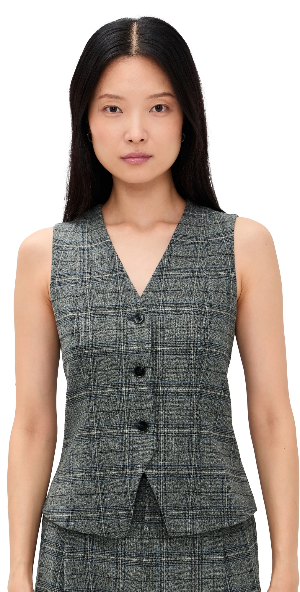 Exclusive to Shopbop Fabric: Mid-weight, low-stretch weave. Plaid pattern. V neck. Sleeveless. Button placket. Shell: 65% polyester/31% viscose/4% elastane. Lined. Lining: 100% polyester. Wash cold. Imported, China. Measurements: Measurements from size XS Length: 21.25in / 54.0cm, from shoulder