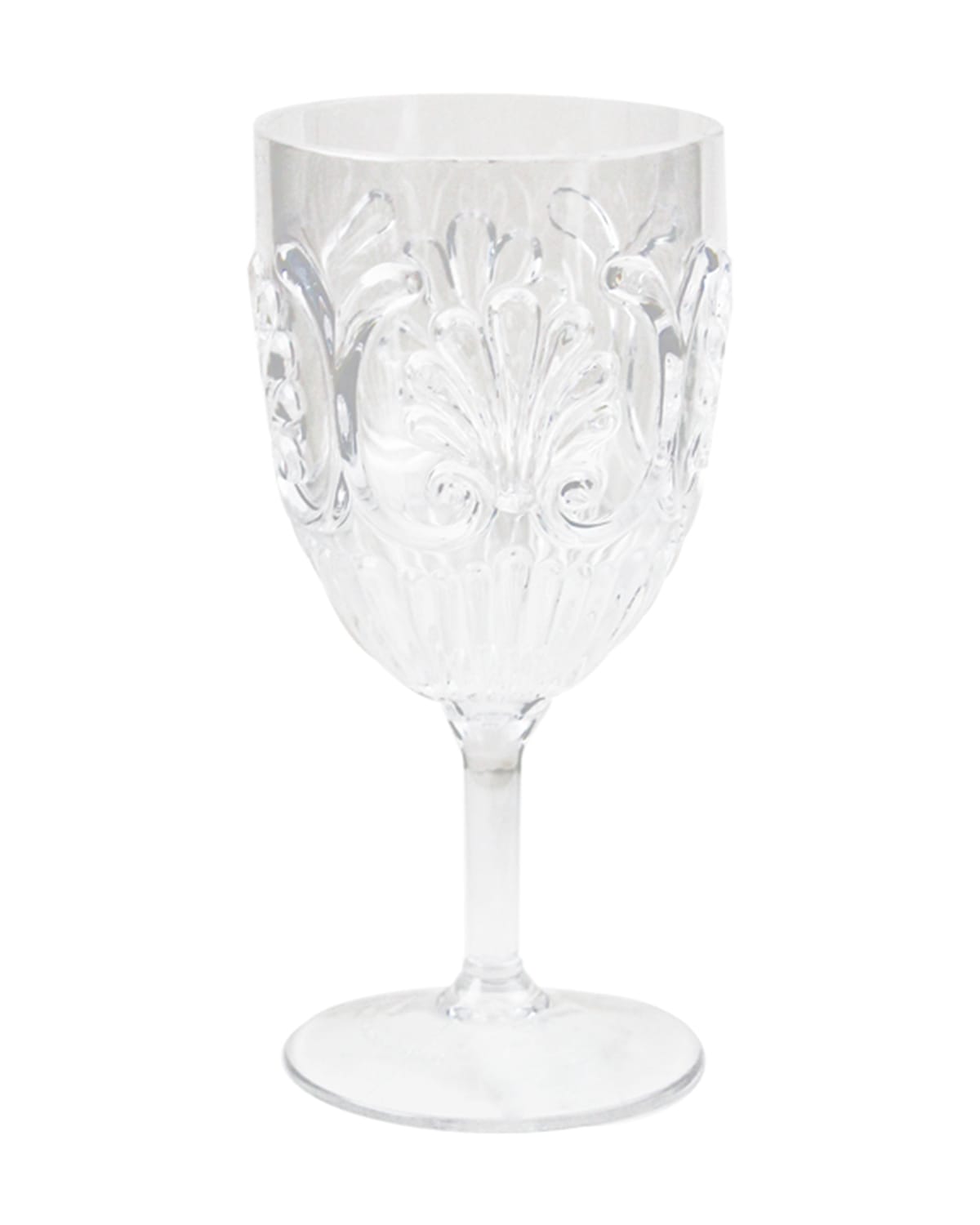Wine glass made of lightweight, shatterproof polycarbonate plastic. Holds approx. 16 oz. Dishwasher safe. Do not microwave. Imported.