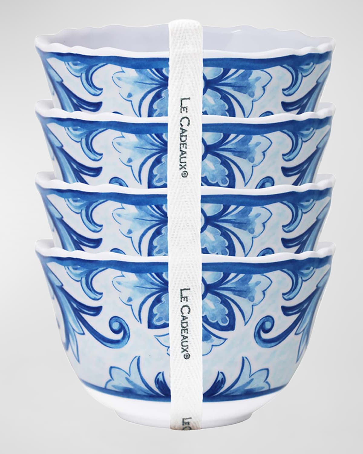 Handcrafted dessert bowls made of printed melamine Approx. 4.75"Dia. 4piece set Dishwasher safe; not for use in microwave Imported