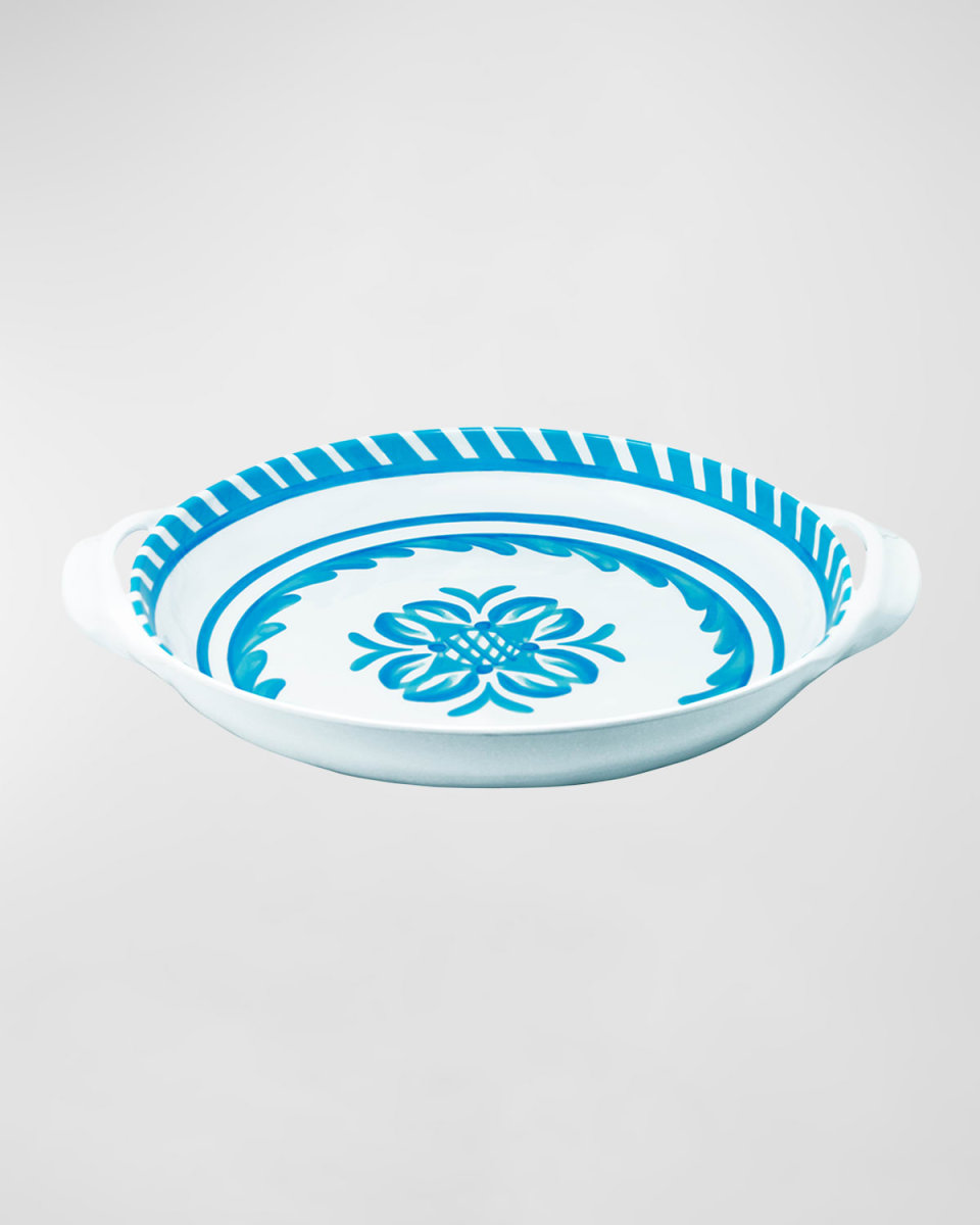 Sicily twohandled shallow serving bowl made of melamine Approx. 11"L x 11"W x 2"T Item Weight (Lbs.): 2.0 Dishwasher safe; not for use in microwave Imported