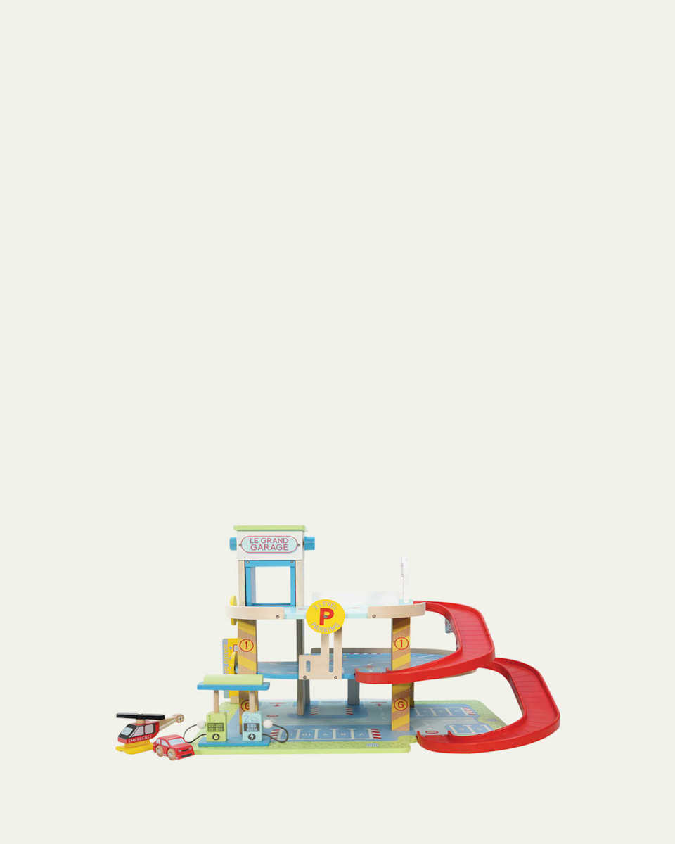 Le Toy Van threestory wooden toy garage with two spiral ramps and a working lift Numbered design assists with counting practice through play Recommended by the Good Toy Guide Experts 2016 Includes a car, helicopter, and a petrol pump Decorated with nontoxic paints Compatible with vehicles by Le Toy Van Approx. 24"L x 5.5"W x 16"T Recommended for ages: 3 years and up Item Weight (lbs.): 14.0 Wood composite/rubberwood/plastic/steel screws Imported