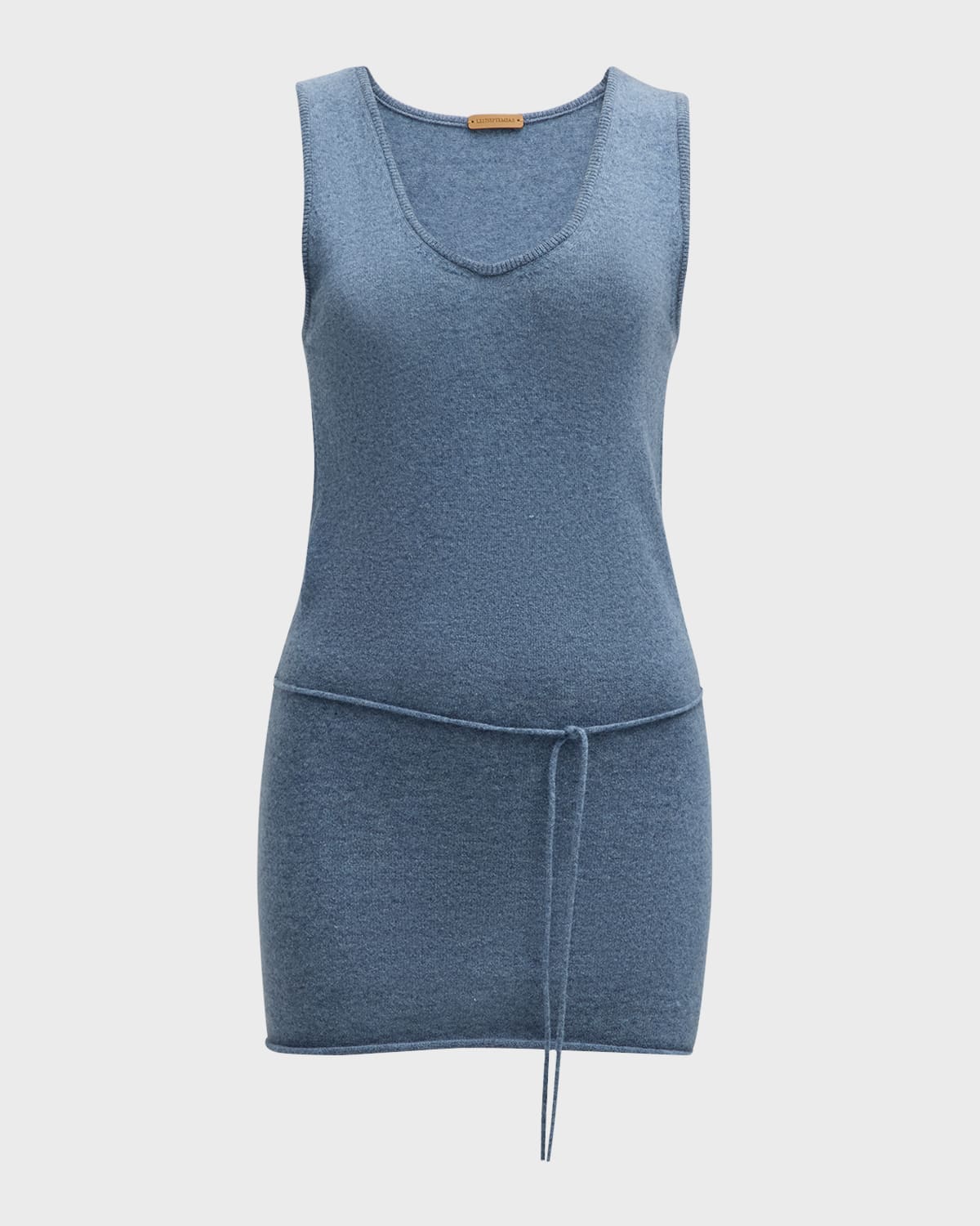 LE17SEPTEMBRE knit tank top featuring a selftie string belt Scoop neckline Sleeveless Fitted Hem falls to the hip Pullover style Polyester Dry clean Imported