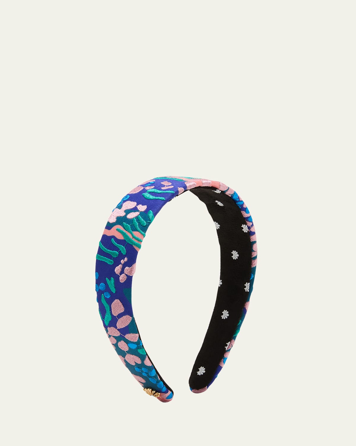 Lele Sadoughi "Bessette" multicolor embroidered headband in cotton Logo charm Spot clean Imported
