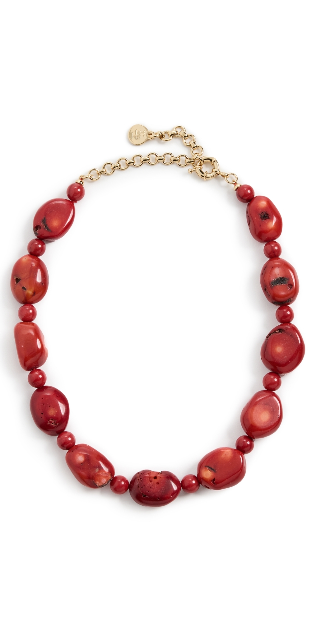 Coral stone accents. Brass. Ring clasp. Imported, China. Measurements: Length: 14.5-17.75in / 37.0-45.0cm
