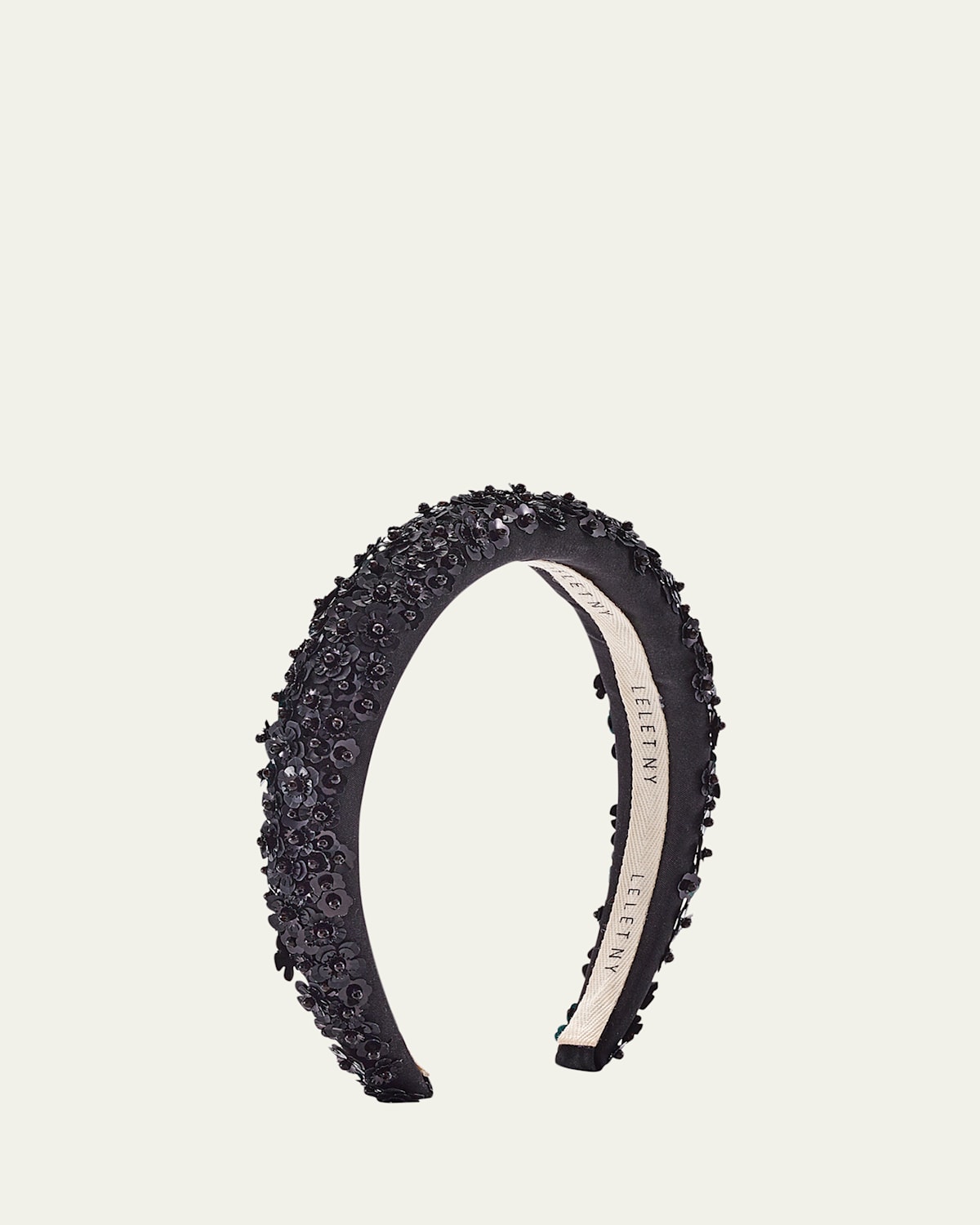 Lelet Ny "Robyn" headband with floral appliques One size fits most Silk faille, plastic sequin Silk/plastic Made in USA