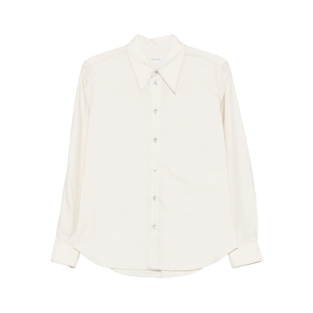 light cream long sleeves button fastening collared neck curved hem