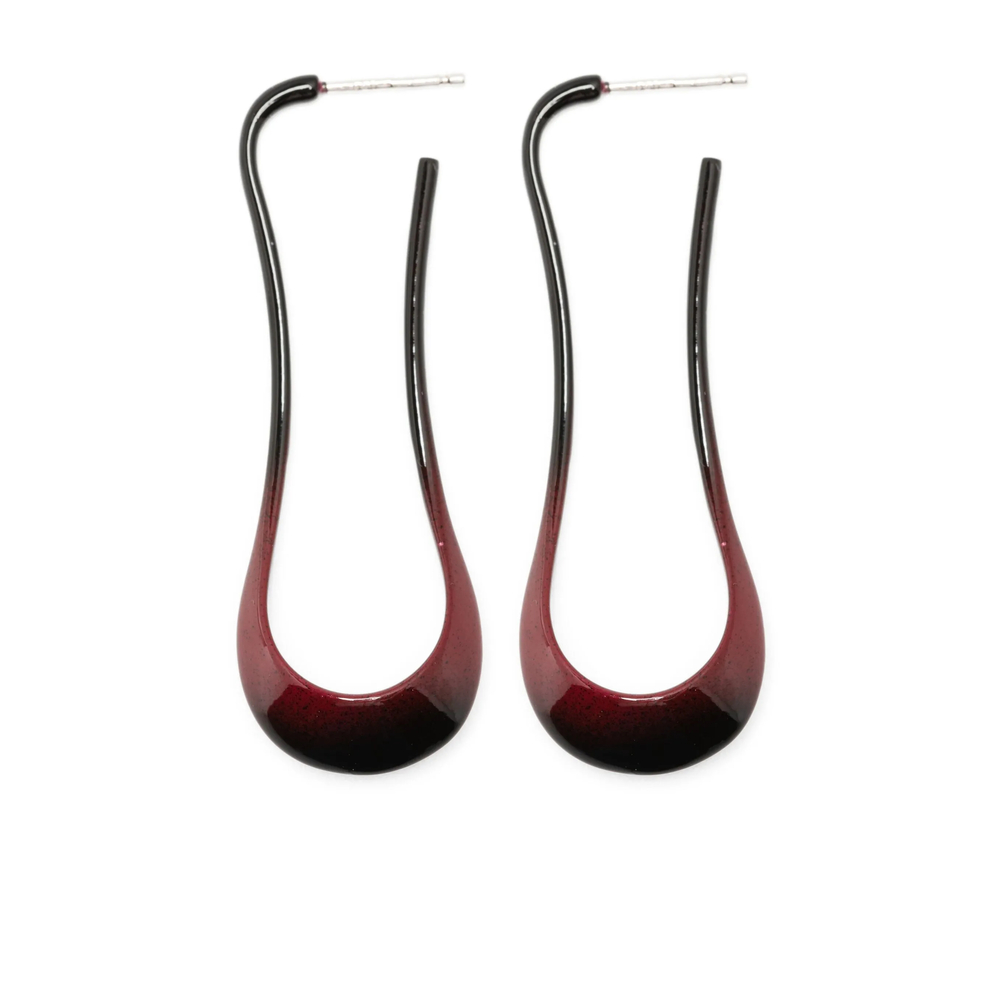 dark red curved design open hoop post fastening polished finish These earrings come as a pair.