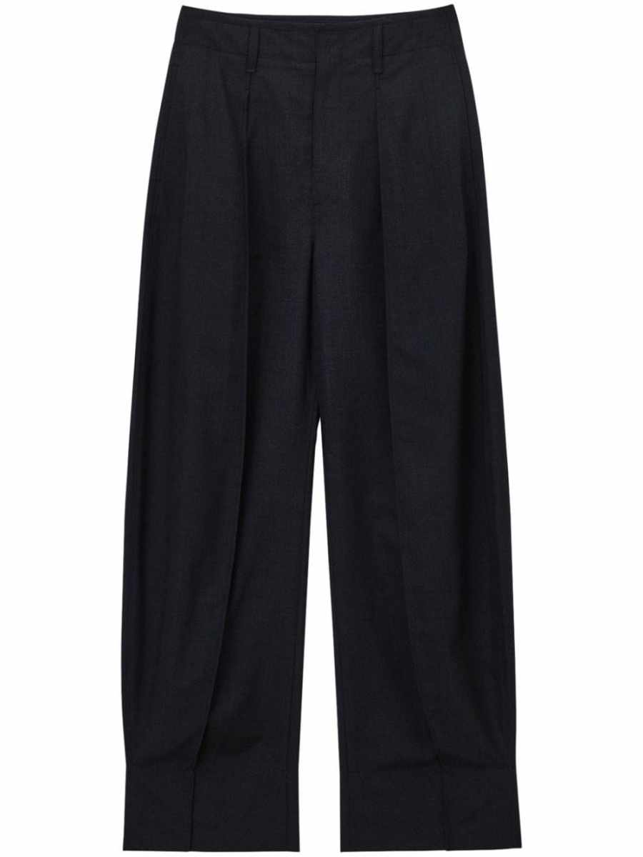 curved-leg tailored trousers