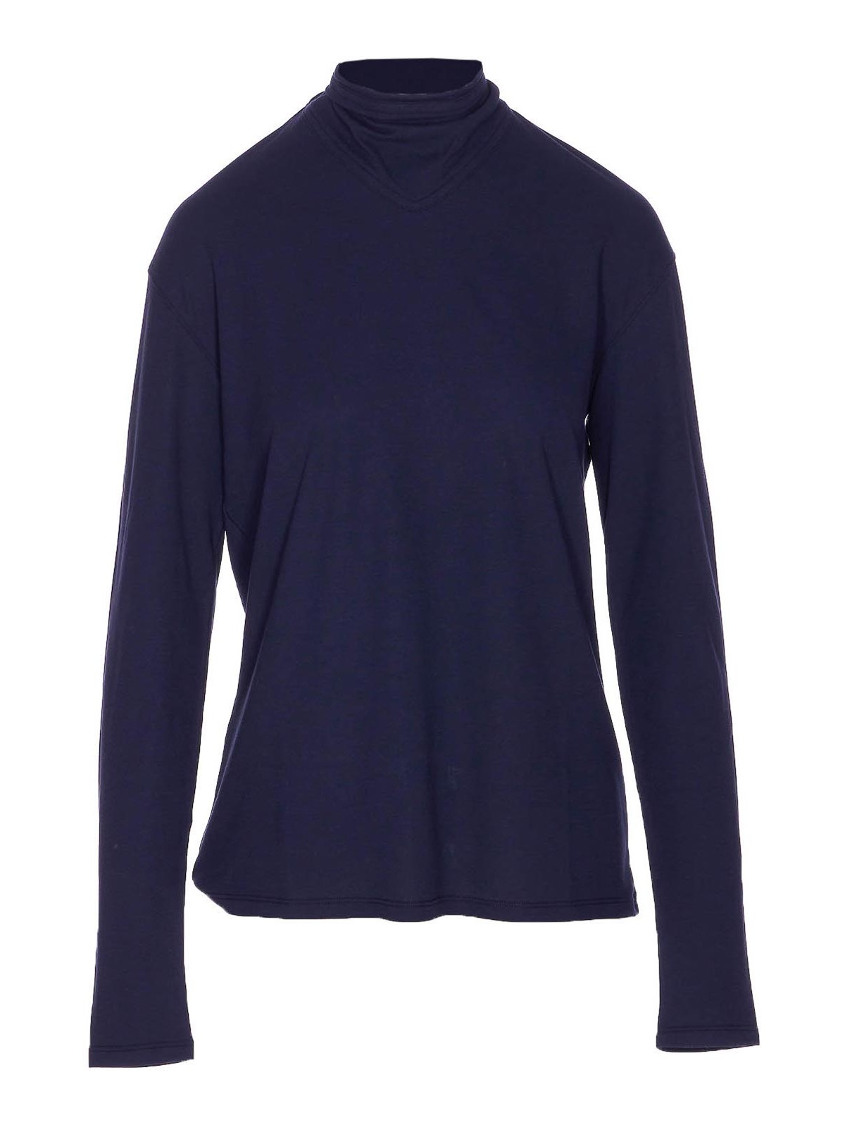 Haut en foulard Lemaire à manches longues en indigo foncé, col rond, avec naud