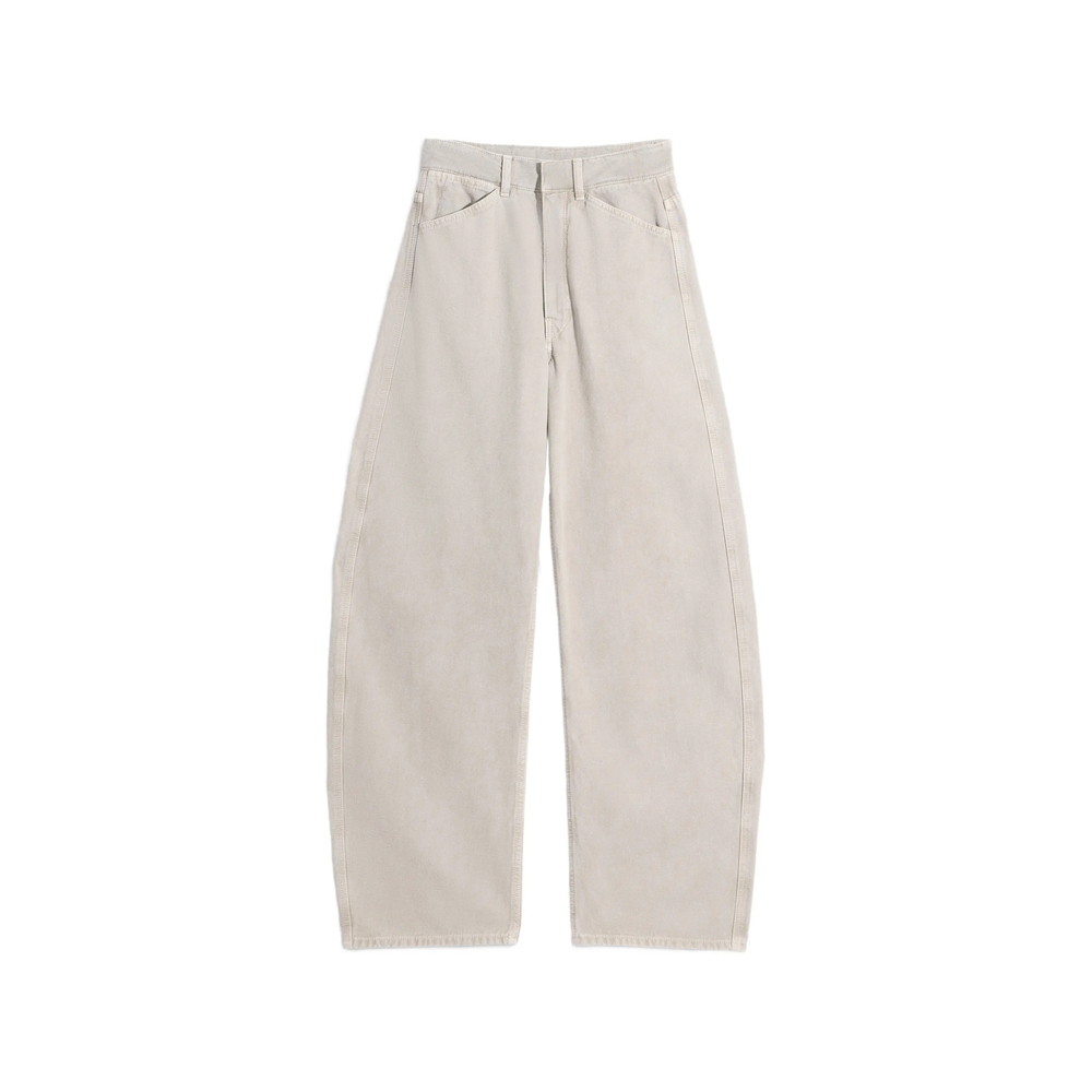 beige twisted seams curved cut back-pockets