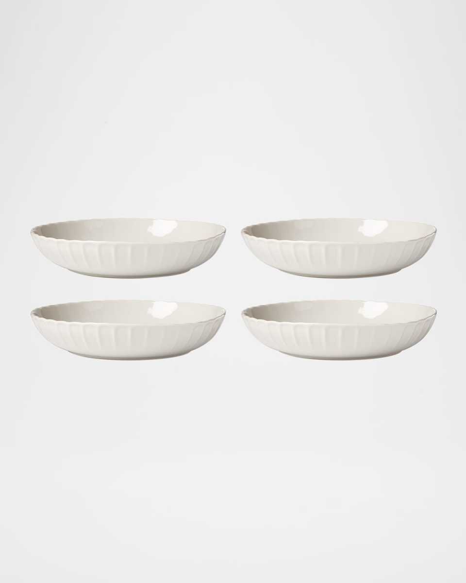 French Perle Scallop is a fresh twist on classic country look with its feminine ruffles and elegant, clean motif. Each piece has its very own scallop design accented with a signature, teastained rim. Bon appetit! Crafted of stoneware Approx. 10"Dia. x 2.3"T Capacity, 16 oz. each Dishwasher safe Set of four Imported