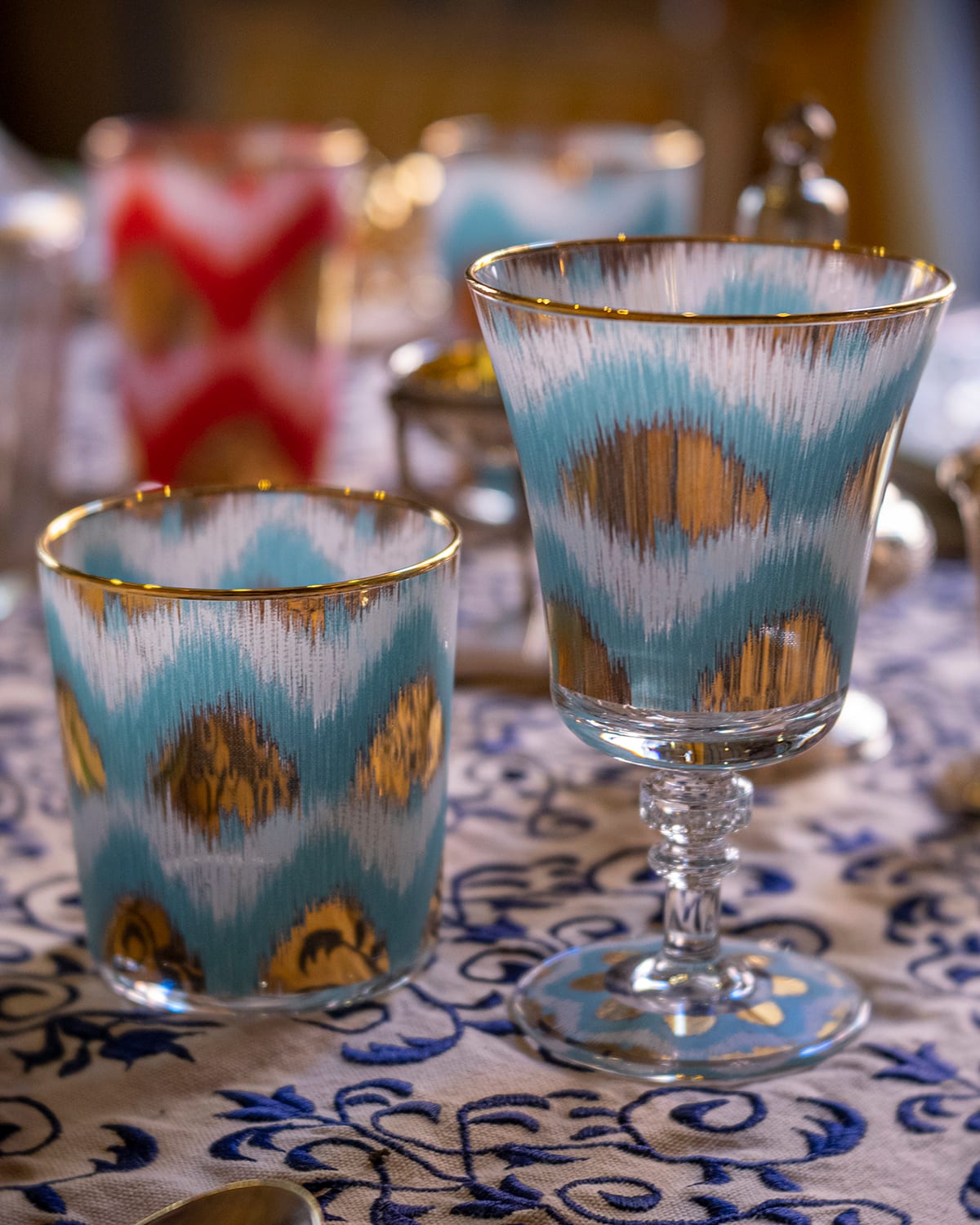 Wine glass is made from glass with fluted, gilded rims and baluster stems reminiscent of vintage tableware Approx. 3.4"Dia. x 5.7"T Item Weight (Lbs.): 0.4 Hand wash Not dishwasher or microwave safe Set of four Imported