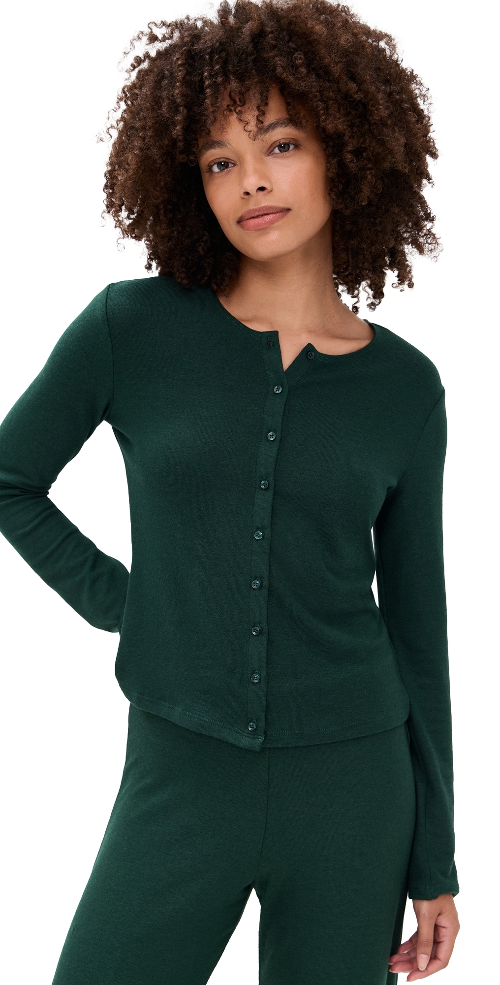 Fabric: Lightweight, super-stretch knit. Crew neck. Long sleeves. Button placket. Shell: 47% polyester/47% rayon/6% spandex. Hand wash. Made in the USA. Measurements: Measurements from size S Length: 19in / 48.0cm, from shoulder