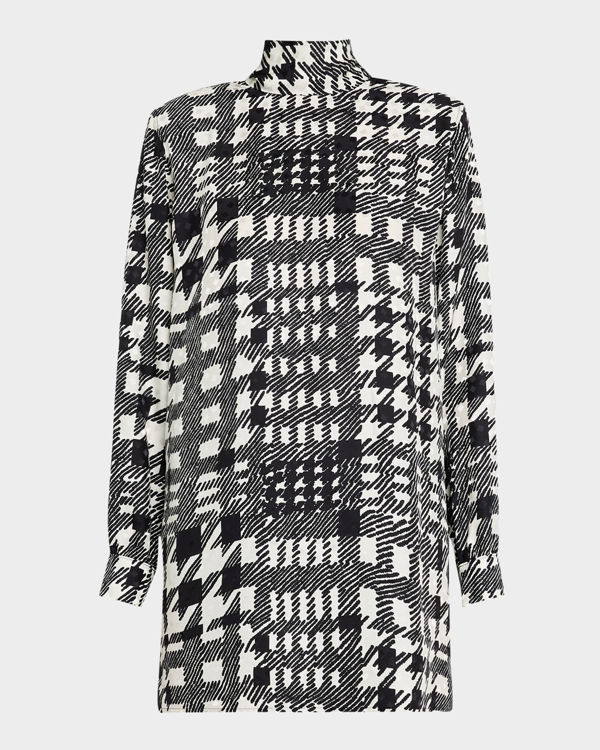 Peggys Houndstooth Silk Long-Sleeve Blouse